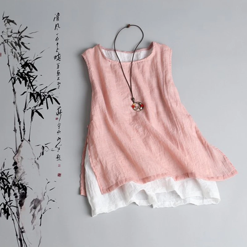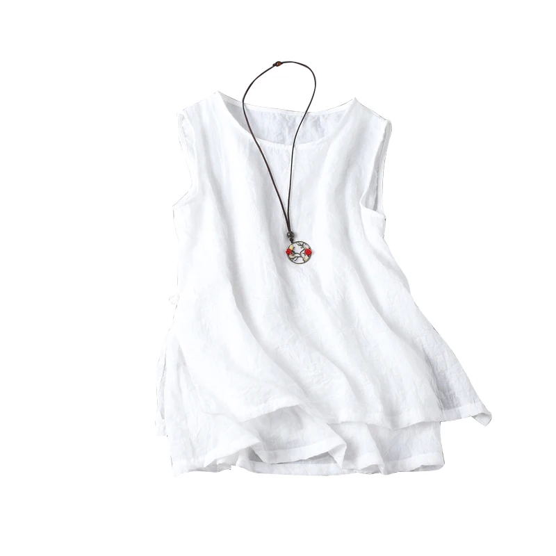Новинка лета 2020, художественный стиль, женские майки без рукавов, хлопковый льняной Повседневный Белый Топ, Женский винтажный Топ, размер женский S731