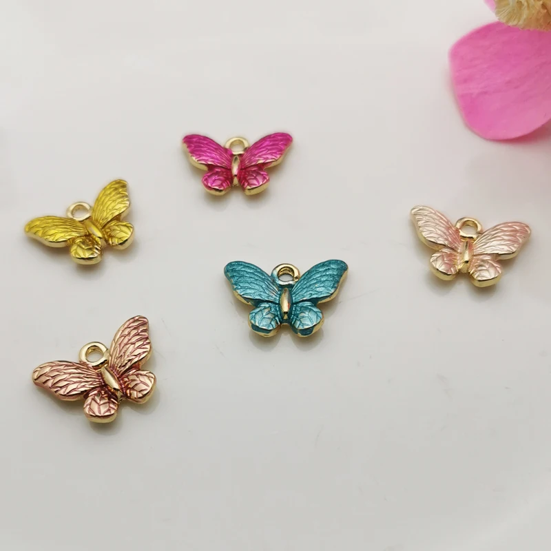 10 шт. разноцветные металлические подвески в виде бабочки золотого цвета, 3D эмалевые подвески в форме бабочки, подходят для сережек, фурнитура сделай сам, ювелирный материал YZ829