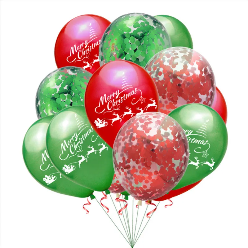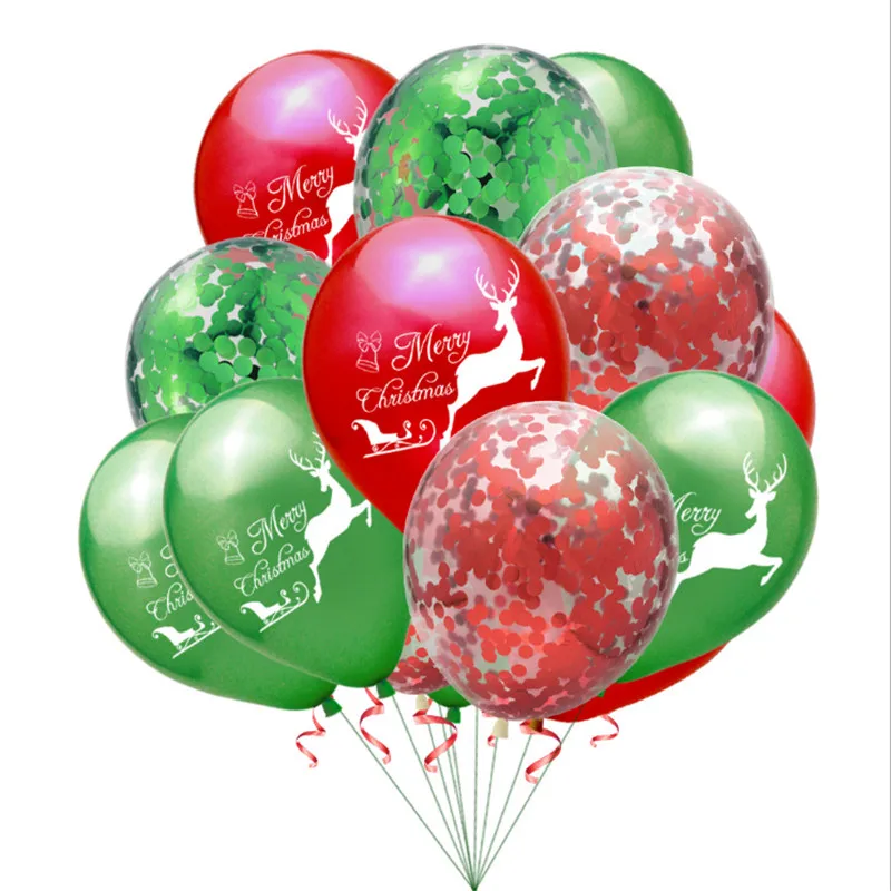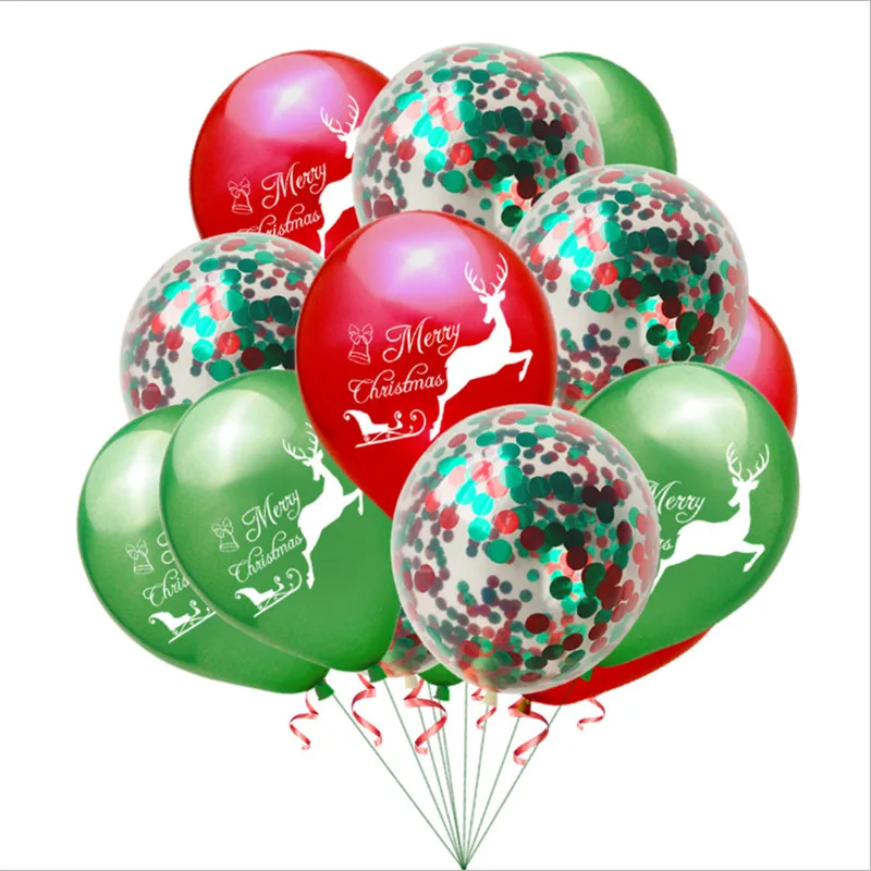 Комплект 3:(23 шт. в упаковке) красный шар 6 лося + зеленый 6 лося + 8red-зеленые Блестки + подвесной флаг + Ribbon2