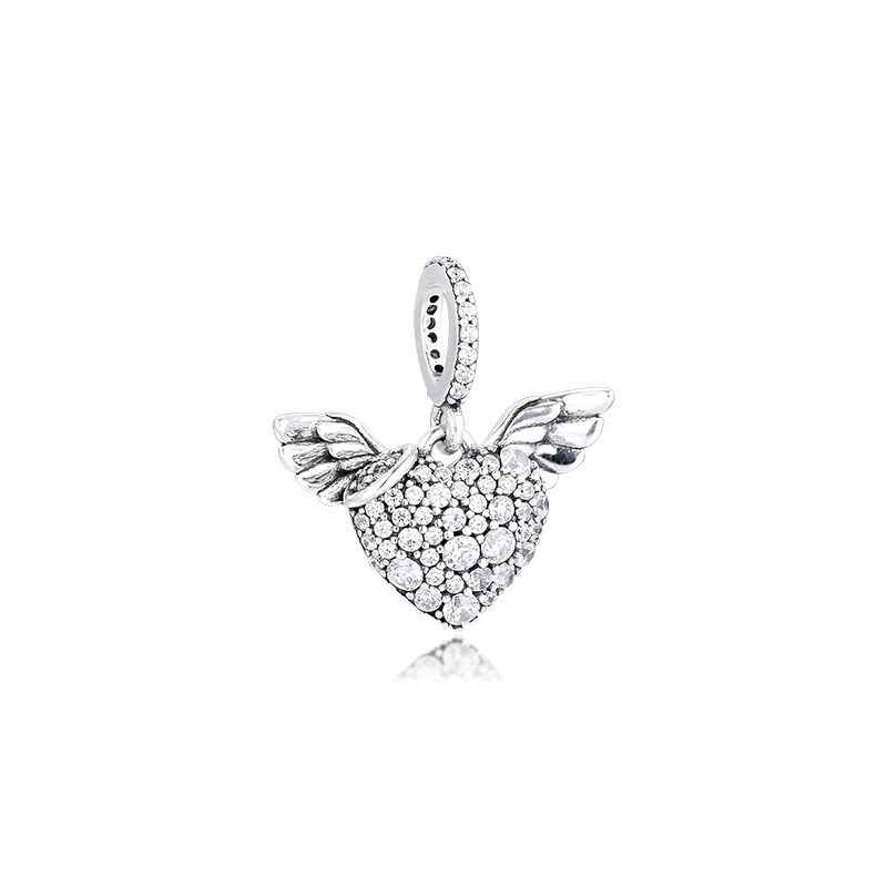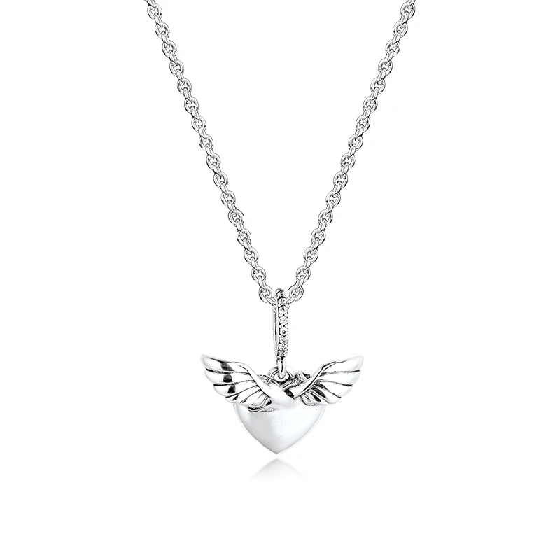 Женское ожерелье из серебра 925 пробы, с сердцем и крыльями ангела