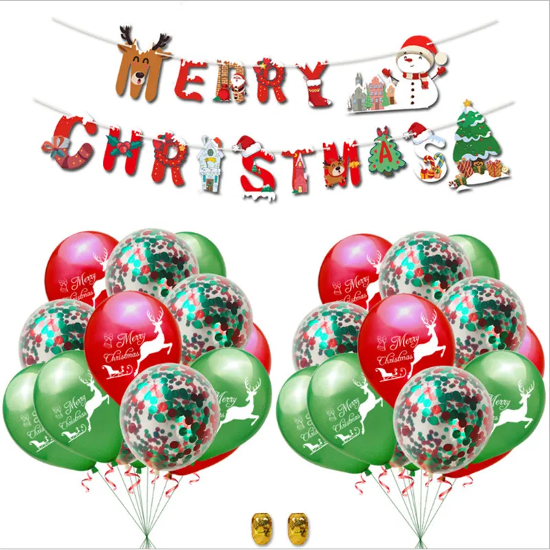 12-дюймовый Новый Санта Клаус висит фоны с флагами шарами упакованы Комбинации Счастливого Рождества для праздников и вечеринок украшения