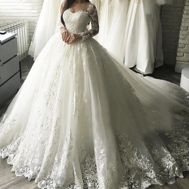 Бальное платье принцессы, свадебное платье с длинным рукавом, плать...