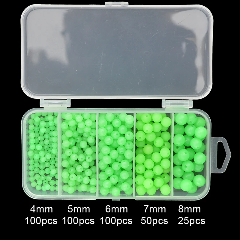 Светящиеся бусины для рыбалки 375 шт. мягкие резиновыежесткие пластиковые ФЛУОРЕСЦЕНТНОЕ свечение зеленые рыболовные бусины диаметром 4 мм 5 мм 6 мм 7 мм 8 мм