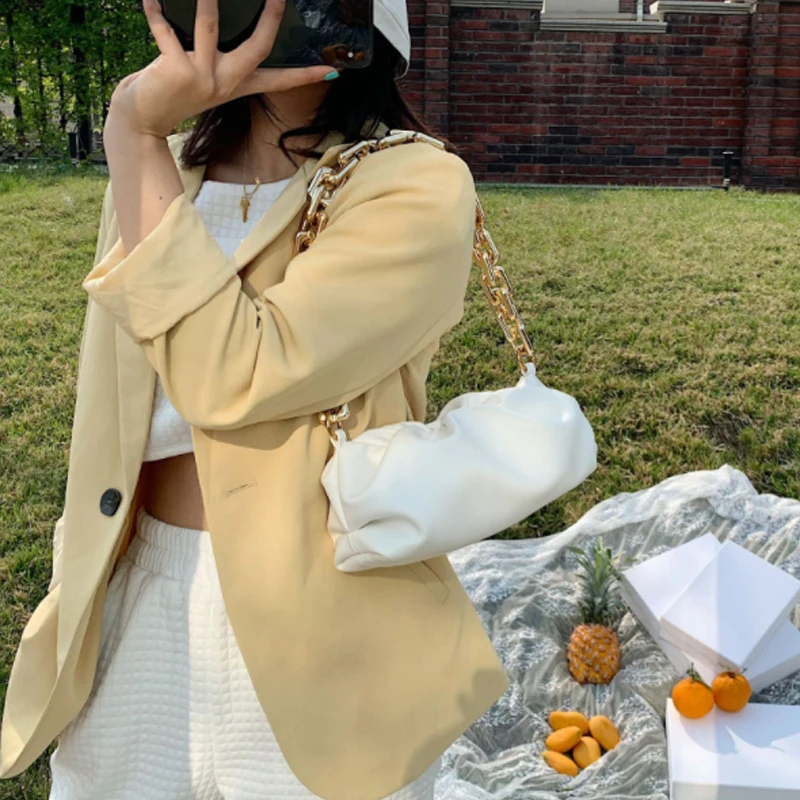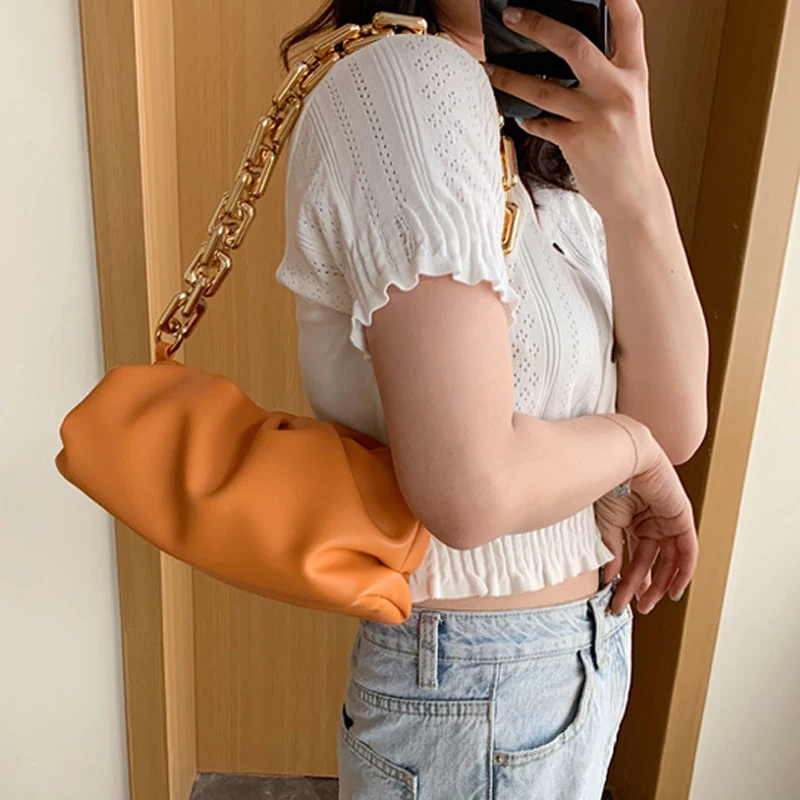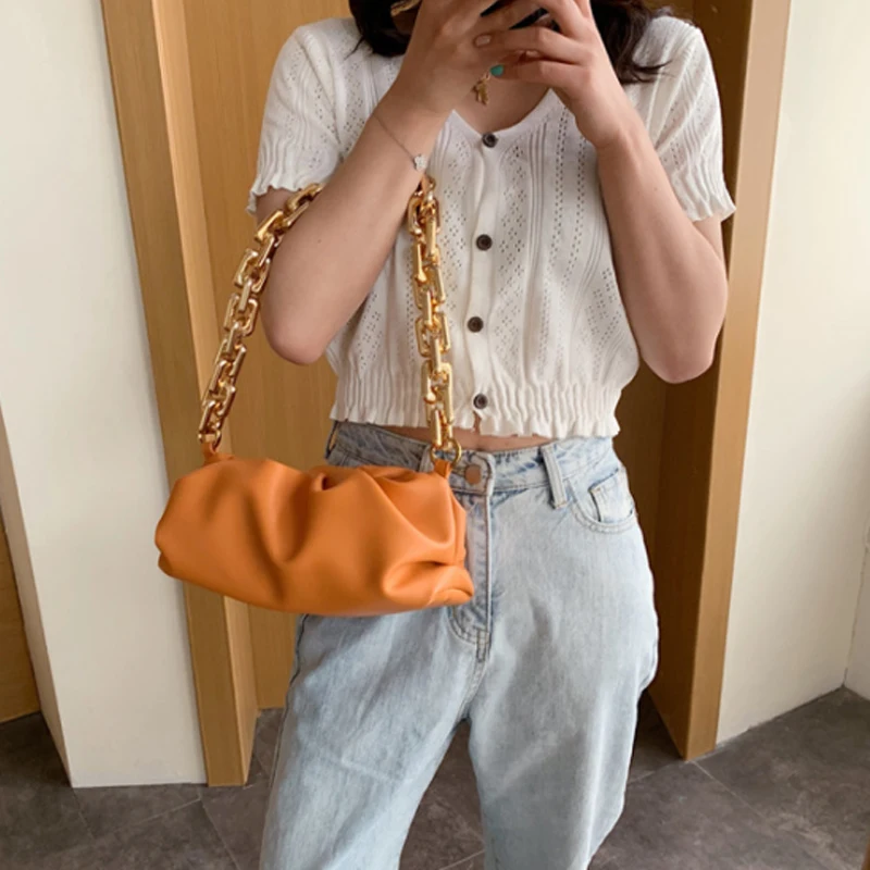 Роскошная цепь женская сумка из искусственной кожи толстая цепочка облако сумка модная сумка через плечо подмышек цепь женская сумка через плечо