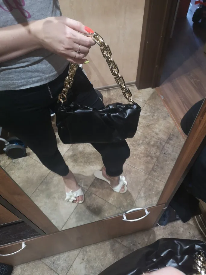 я ждала сумку, а получила клатч, так бы и писали, что это клатч, очень маленькая для сумки, я рас троена, размеры пишут совсем другие, на много больше, чем на самом деле.