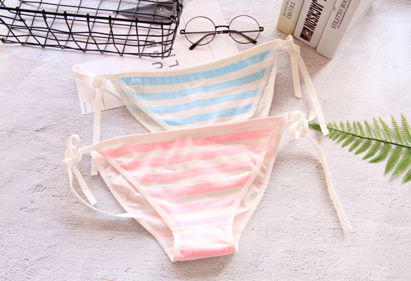 Трусы в Японскую полоску miku, бело-голубые трусы в розовую и белую полоску, Мику, симпатичное нижнее белье