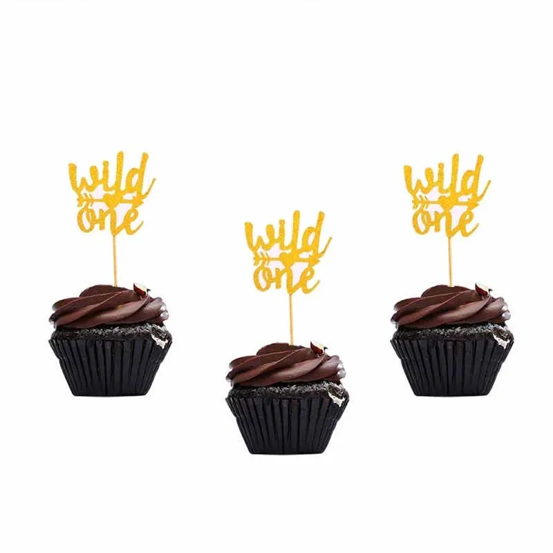Блестящие золотые топперы для капкейков Oh Baby Boy Wild One для де...
