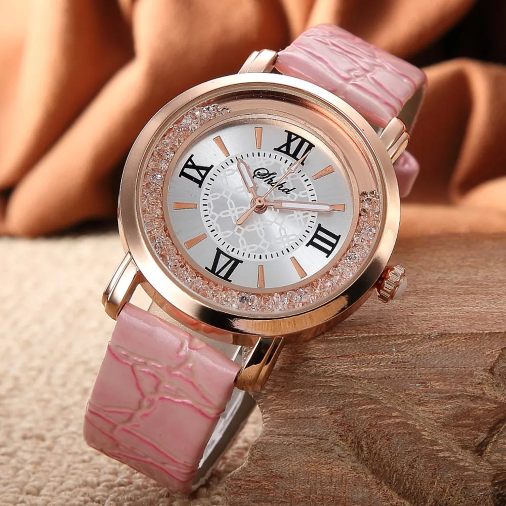 Часы наручные женские электронные со струящейся Стразы, модные студенческие повседневные кварцевые с кожаным ремешком