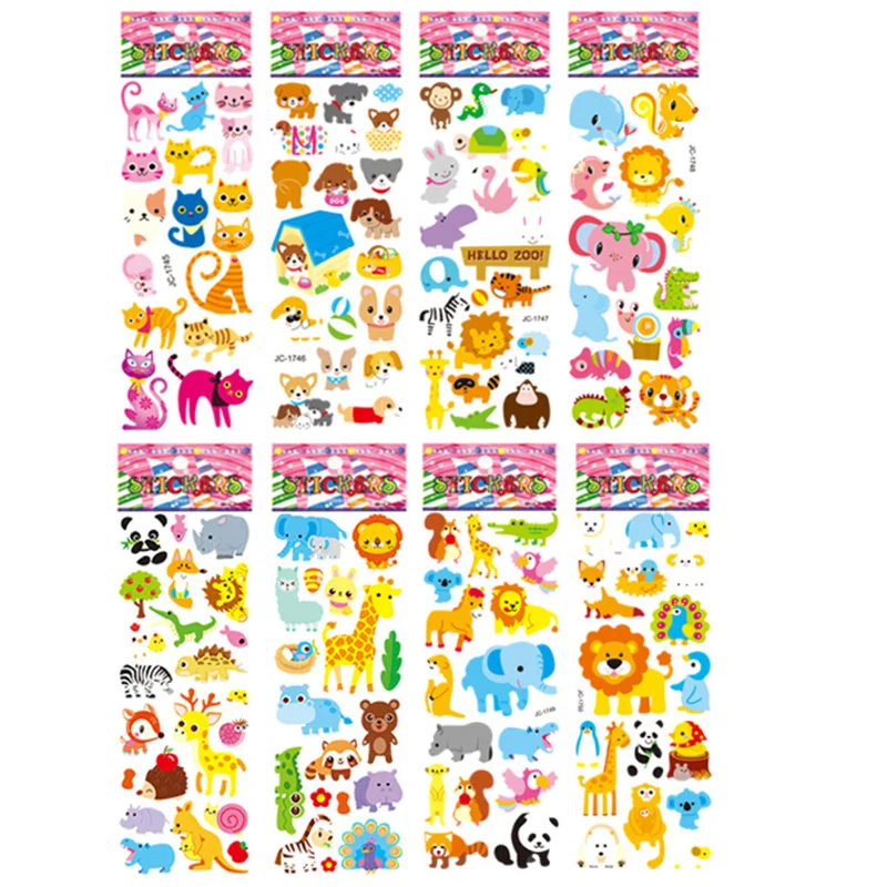 8 листовуп 3D Пышное пузырчатые наклейки животных зоопарка с изображением кошек и собак из мультфильмов игрушка "сделай сам" для детей, детская рубашка для мальчика и девочки, стикер