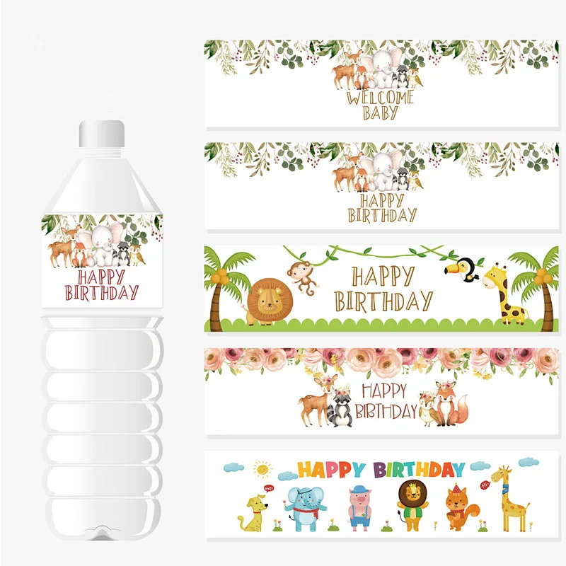 Этикетка для бутылки с водой Jungle Safari, обертка для бутылки с водой в джунглях, детские товары для дня рождения, украшение для детского душа с животными в джунглях