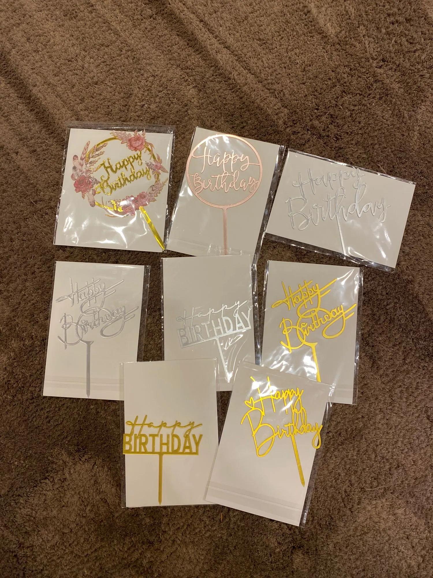 Акриловые флажки для детского дня рождения, топпер для торта С Днем Рождения, золотой, розовый, топперы для торта на день рождения, украшения детский душ