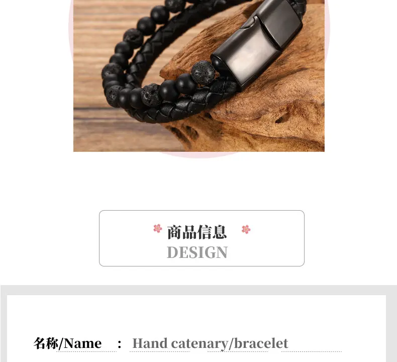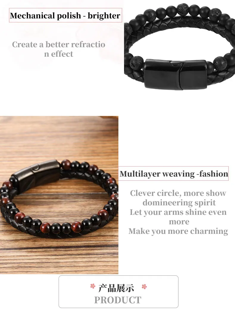 Браслет-цепочка мужской из натурального камня и вулканического камня