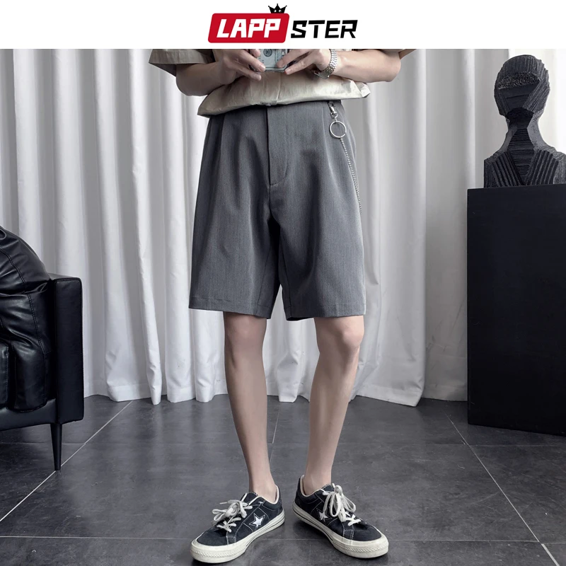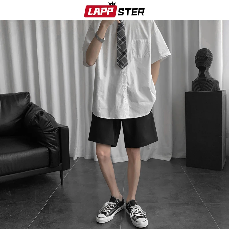 LAPPSTER-Молодежные мужские однотонные повседневные шорты в стиле Х...