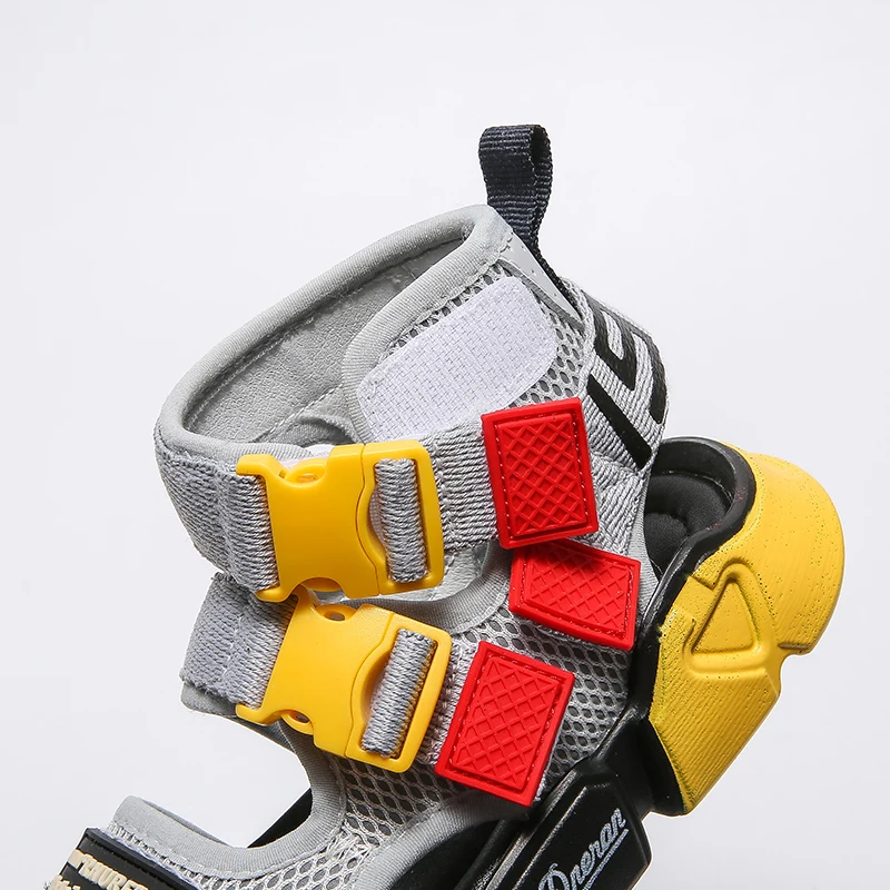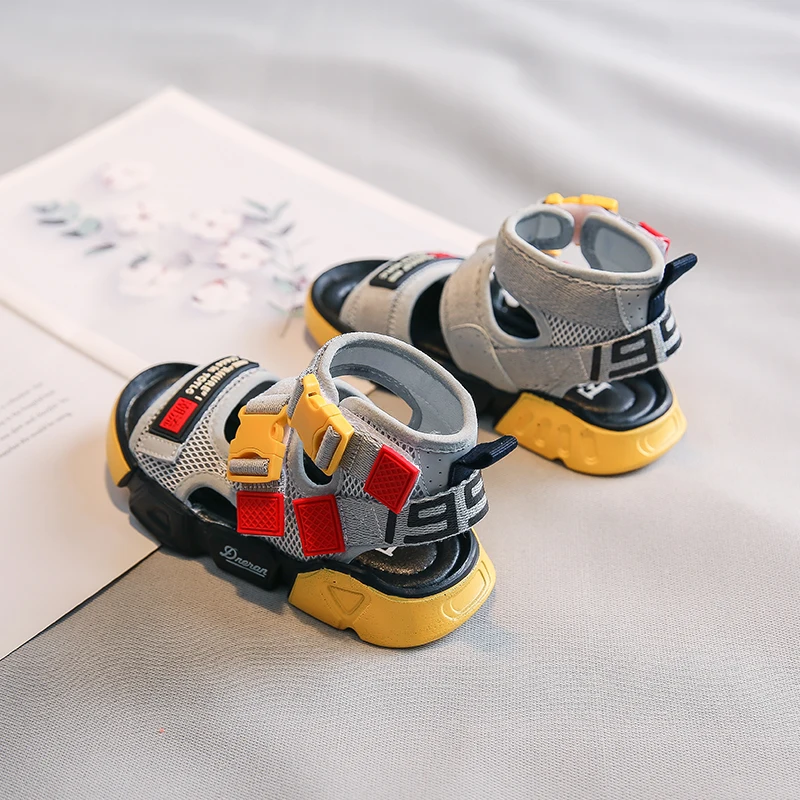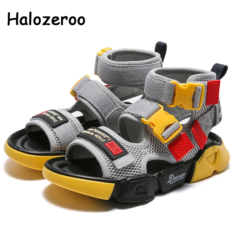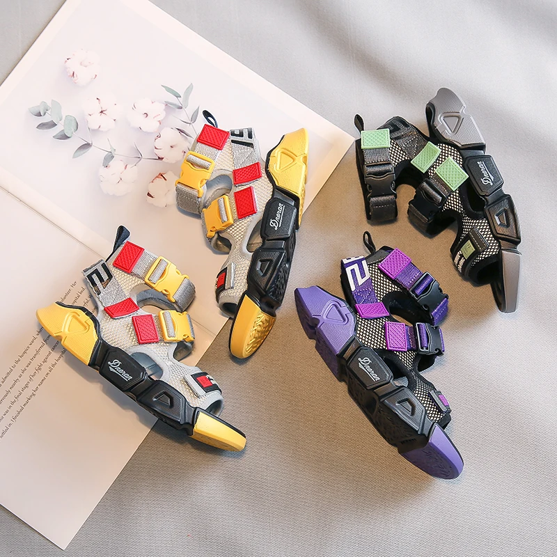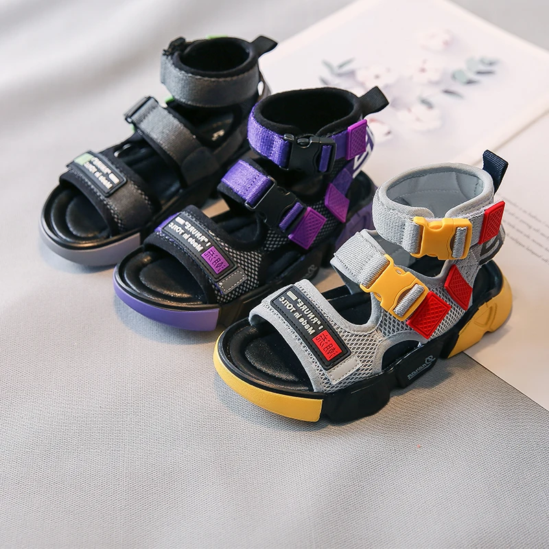 Новые летние детские пляжные сандалии; Спортивные сандалии для маленьких мальчиков; Детская брендовая обувь серого цвета; Модные повседневные сандалии для девочек; Кожаная обувь; 2020
