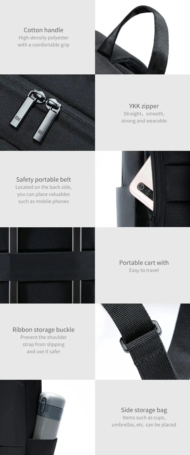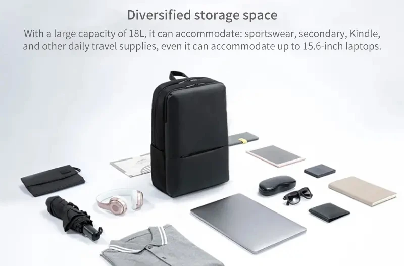 Классический деловой стиль для поездок. Водонепроницаемость уровня 4. Увеличенная емкость 18 л. 15,6 дюймовый держатель для ноутбука. 3-х слойная комфортная Система переноски. Задняя панель в сэндвич-стиле, охлаждающая и дышащая. С ремешком сзади, можно прикрепить к толкателю чемодана.
