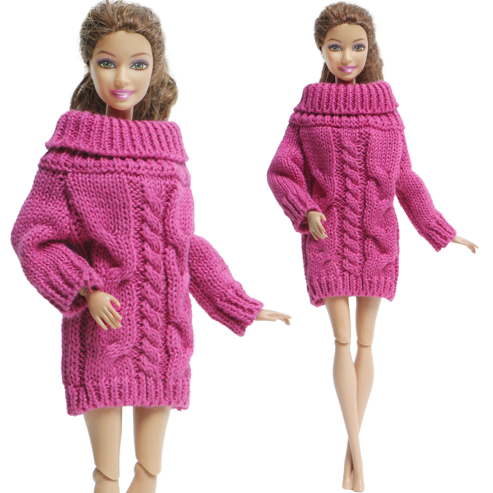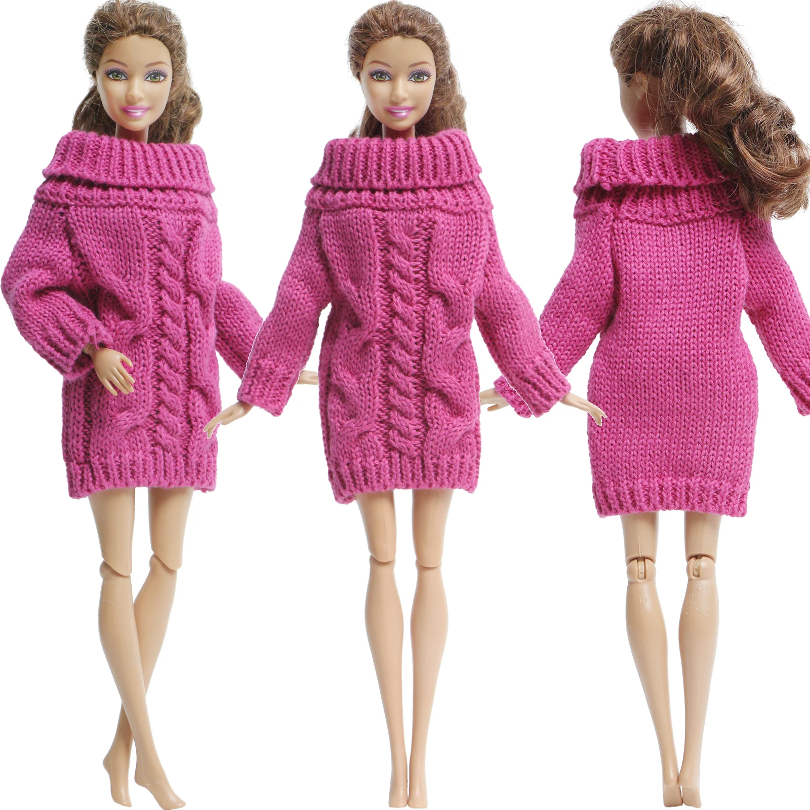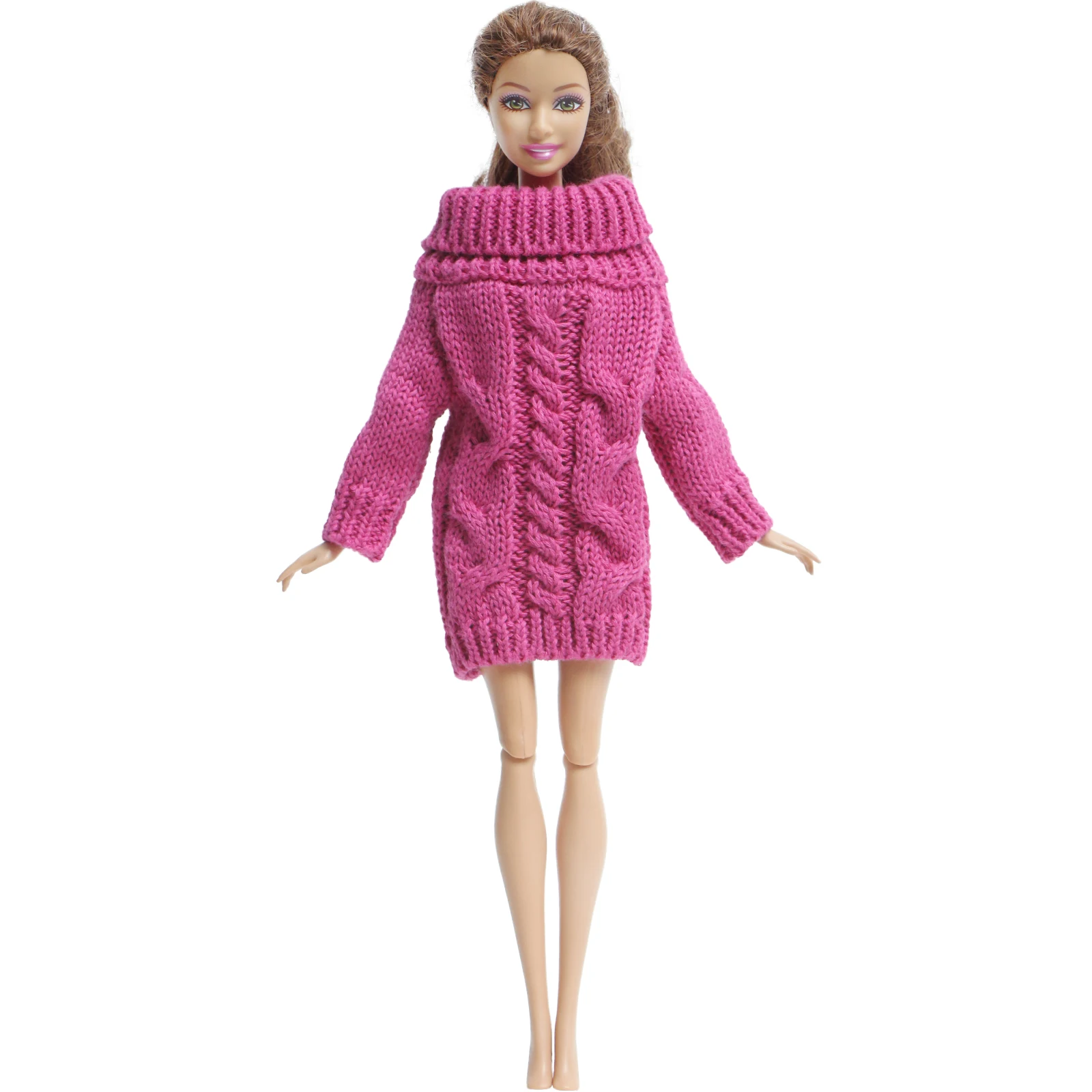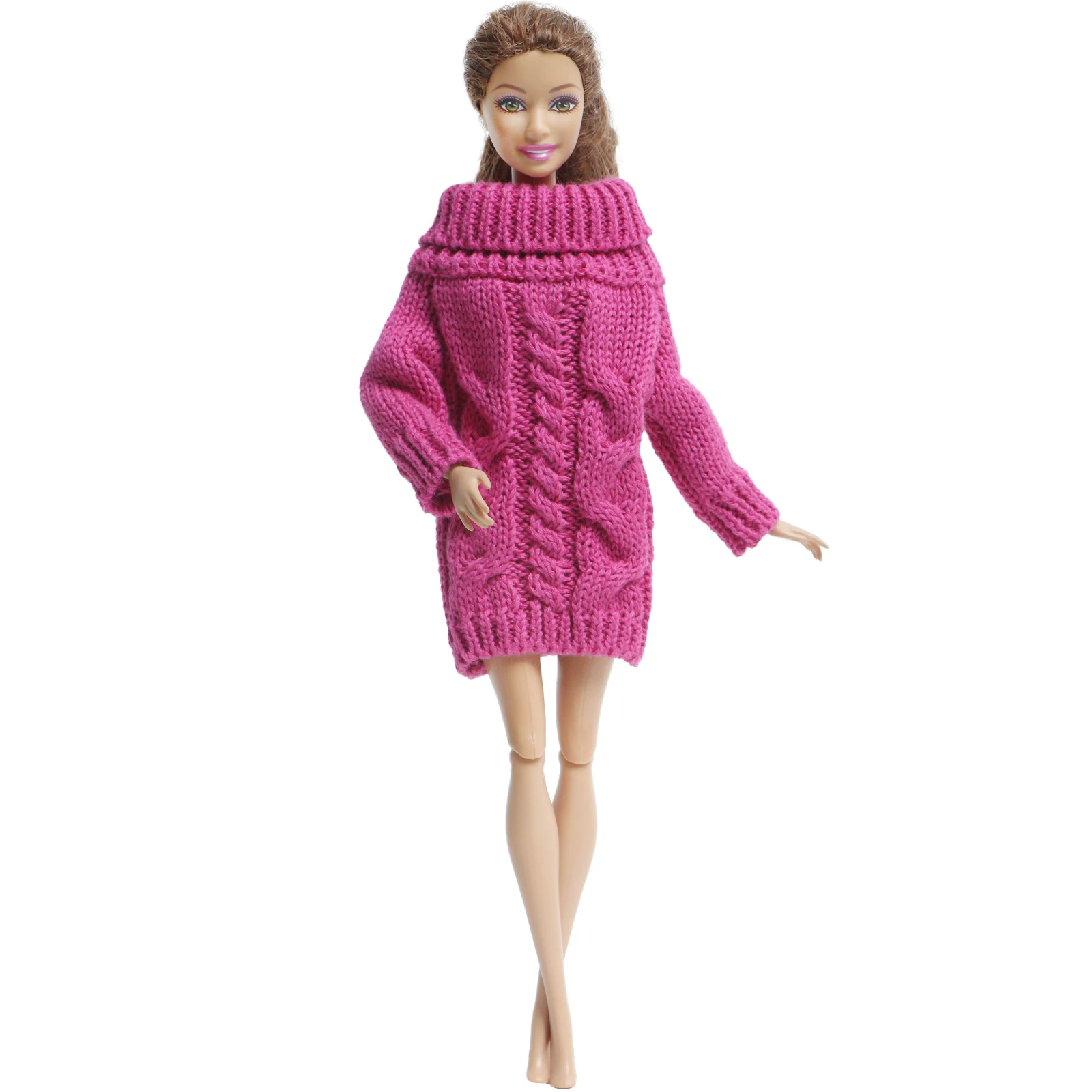 1 шт., высокое качество, глубокий розовый мини вязаный мягкий теплый свитер, платье, повседневная одежда, Одежда для куклы Барби, аксессуары, игрушка