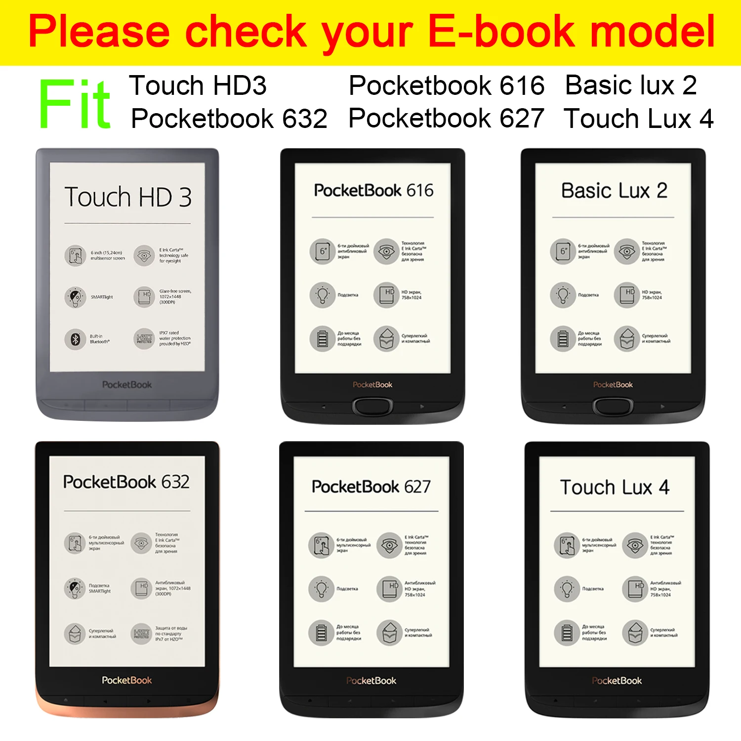 Однотонный чехол для Pocketbook 627 616 632 6,0 дюймов, подставка из искусственной кожи, чехол для PocketBook Touch Lux 4/Touch HD 3/Basic Lux 2