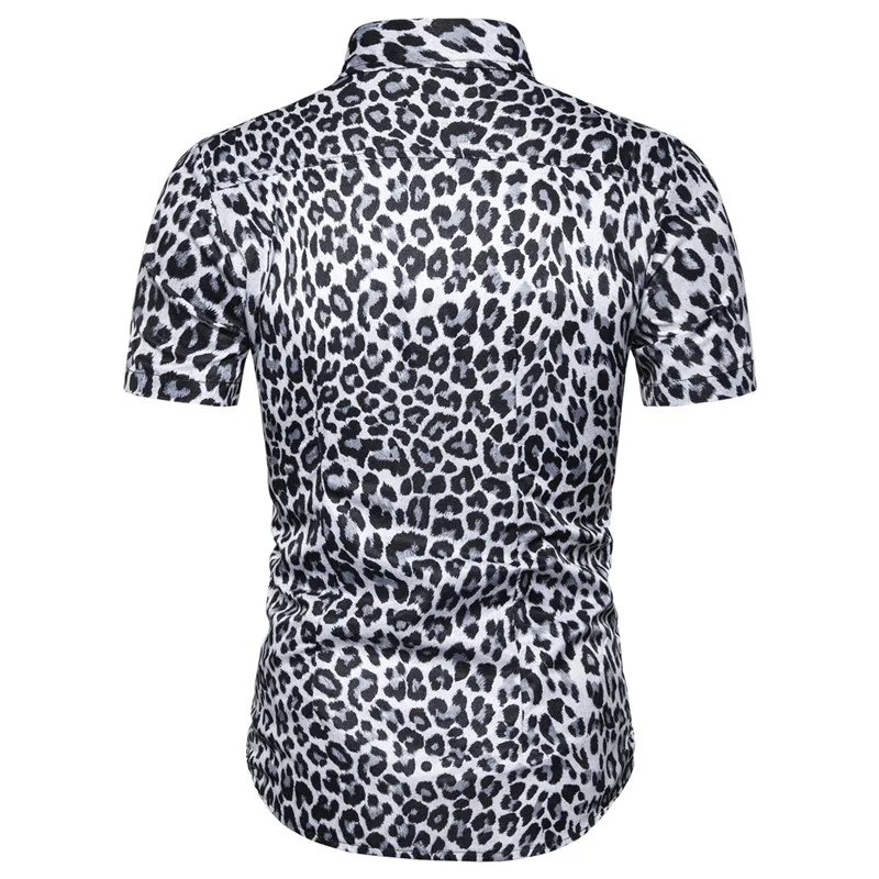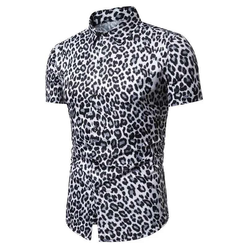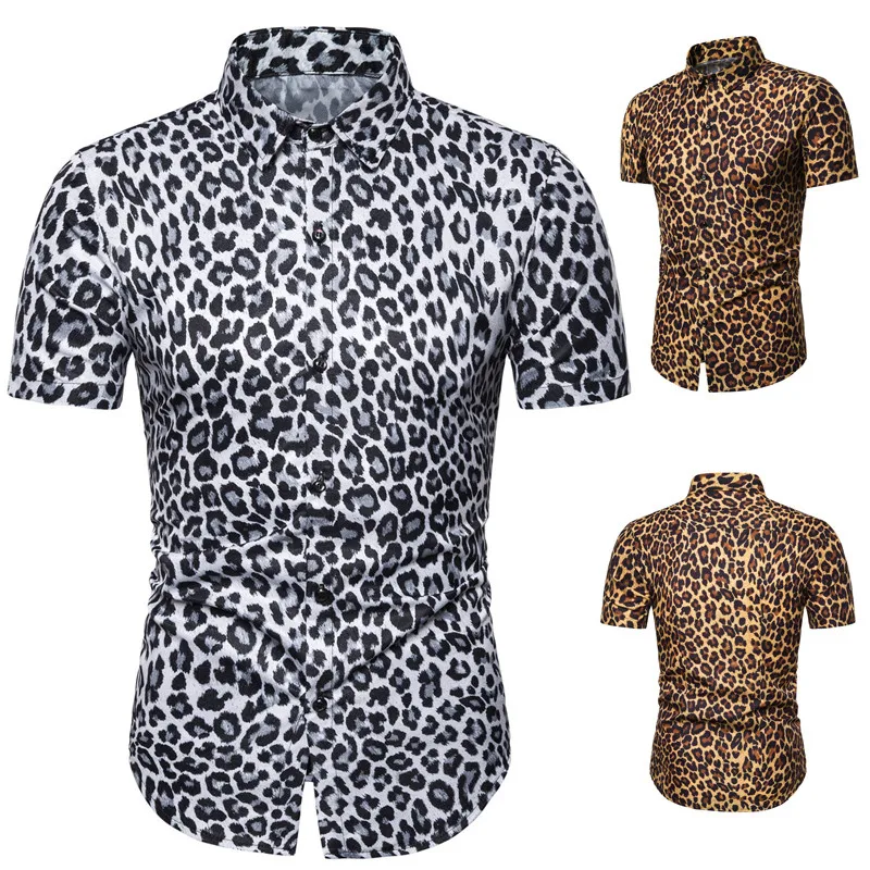 Мужская рубашка с коротким рукавом, винтажная рубашка с леопардовым принтом для ночного клуба, Повседневная Уличная одежда для вечевечерние, 2020