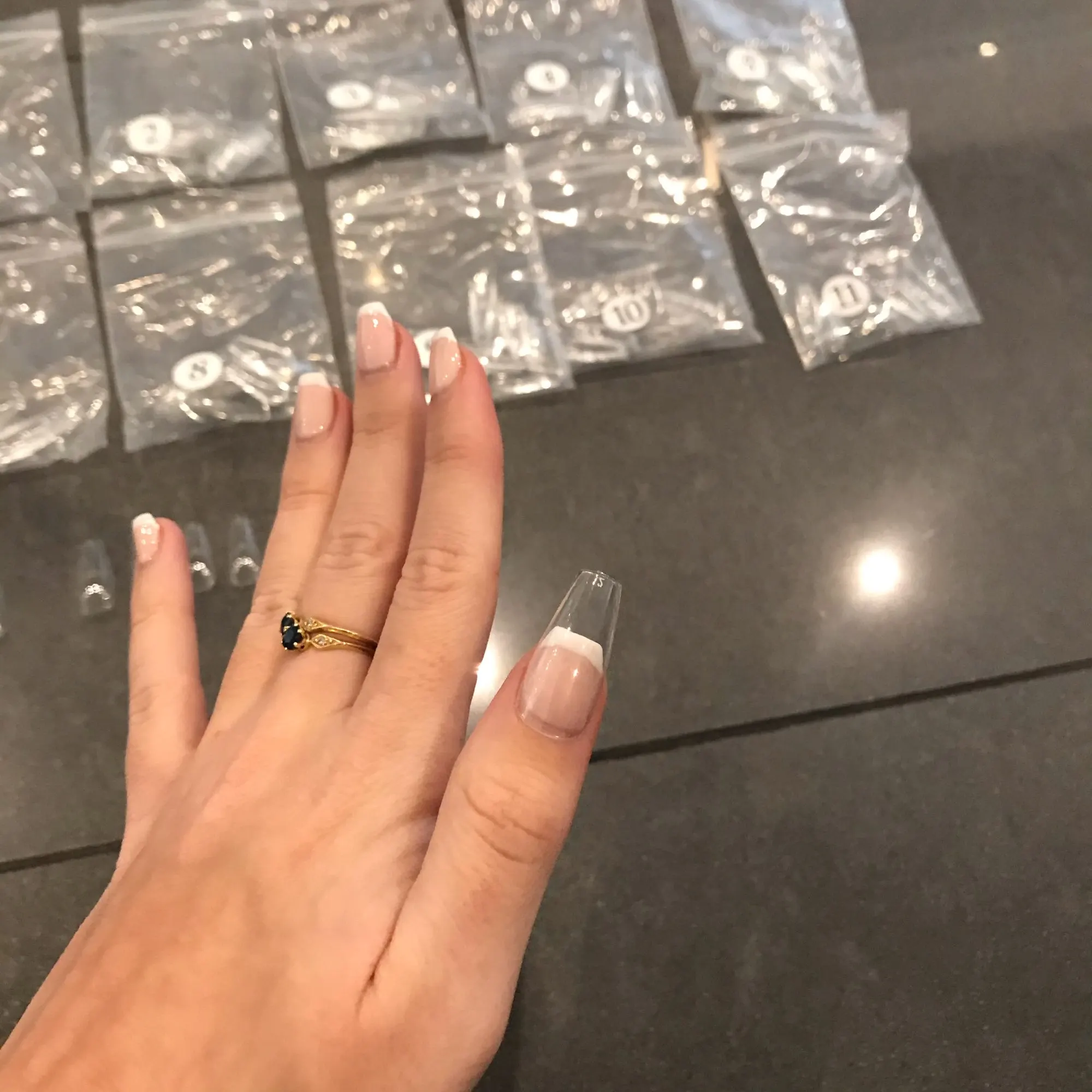 Отличный Apres GelX dupe, наконечники толще и прочнее, чем я ожидал, размеры соответствуют должным образом. Было сделано минимально, чтобы не было дополнительной формы. Я наложил их толстым слоем прозрачного базового покрытия, хотя я подумываю использовать прозрачный гель-конструктор для следующего набора, чтобы, надеюсь, сделать их дольше. Они, безусловно, легче, чем акриловые, но не хлипкие.