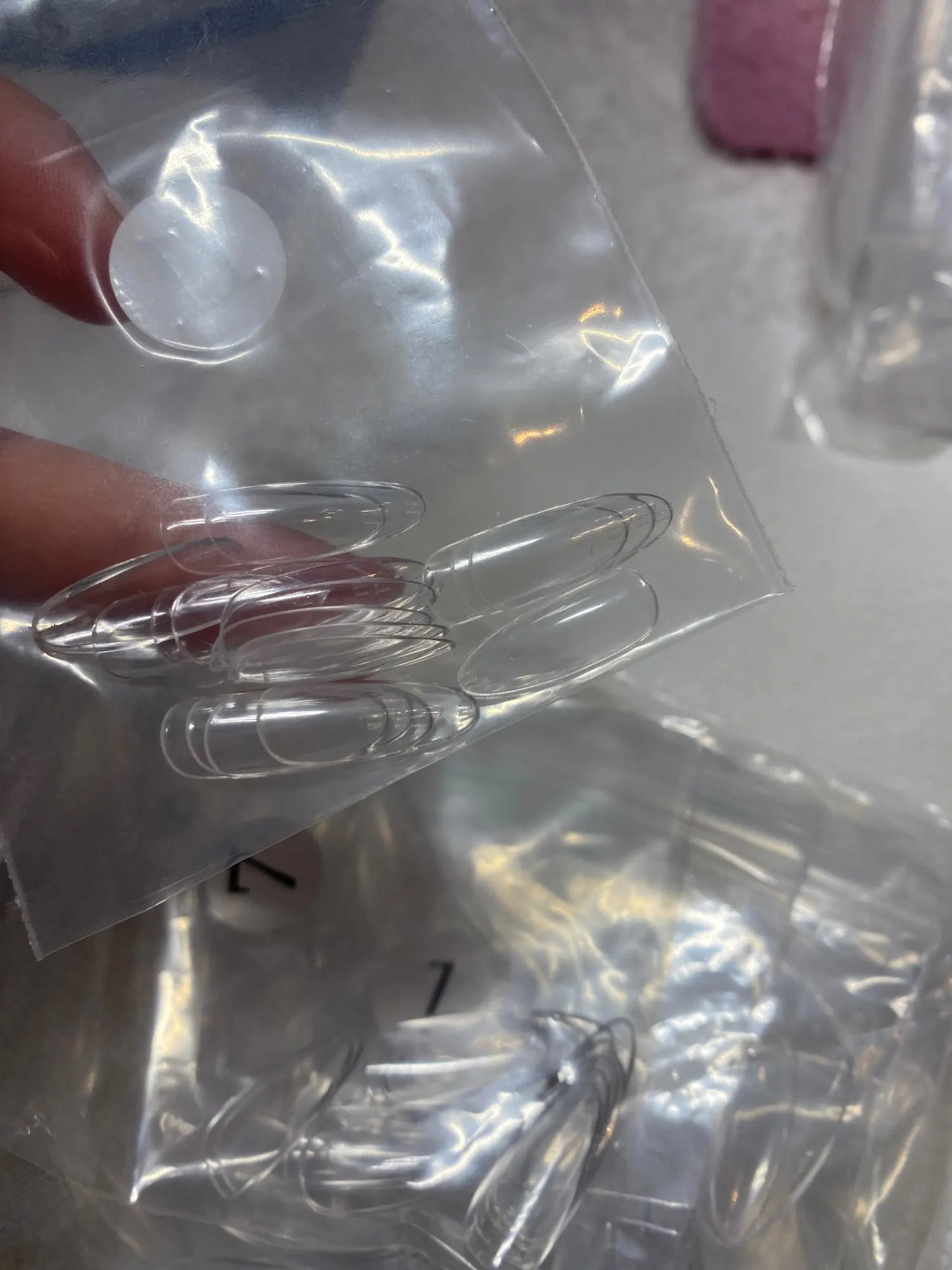 Очень тонкие типсы, качественно сделаны, для арочных ногтей не подойдут. И для широкого большого пальца тоже. Каждого размера по 20 штук, упаковано прилично. По виду похожи на акриловые, взяла для скоростного наращивания, если вдруг кому-то из клиентов приспичит)) Попробую на себе, отношу и отзыв дополню. Доставка до Чехии 2 месяца.