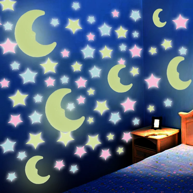 3D флуоресцентные светящиеся наклейки на стену со звездами и луной, светится в темноте, наклейки для детской комнаты, гостиной, подарки сделай сам