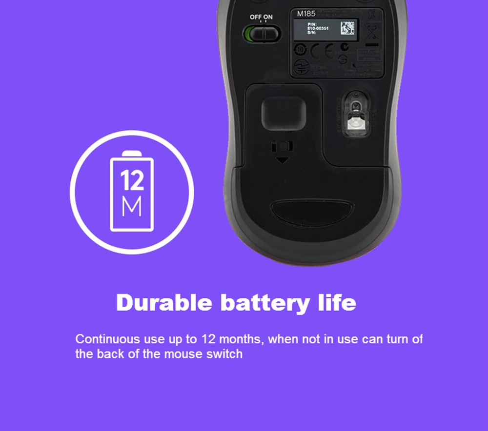 Мышь Logitech M185 Беспроводная, с USB-нано-приемником, 1000DPI, 2,4 ГГц