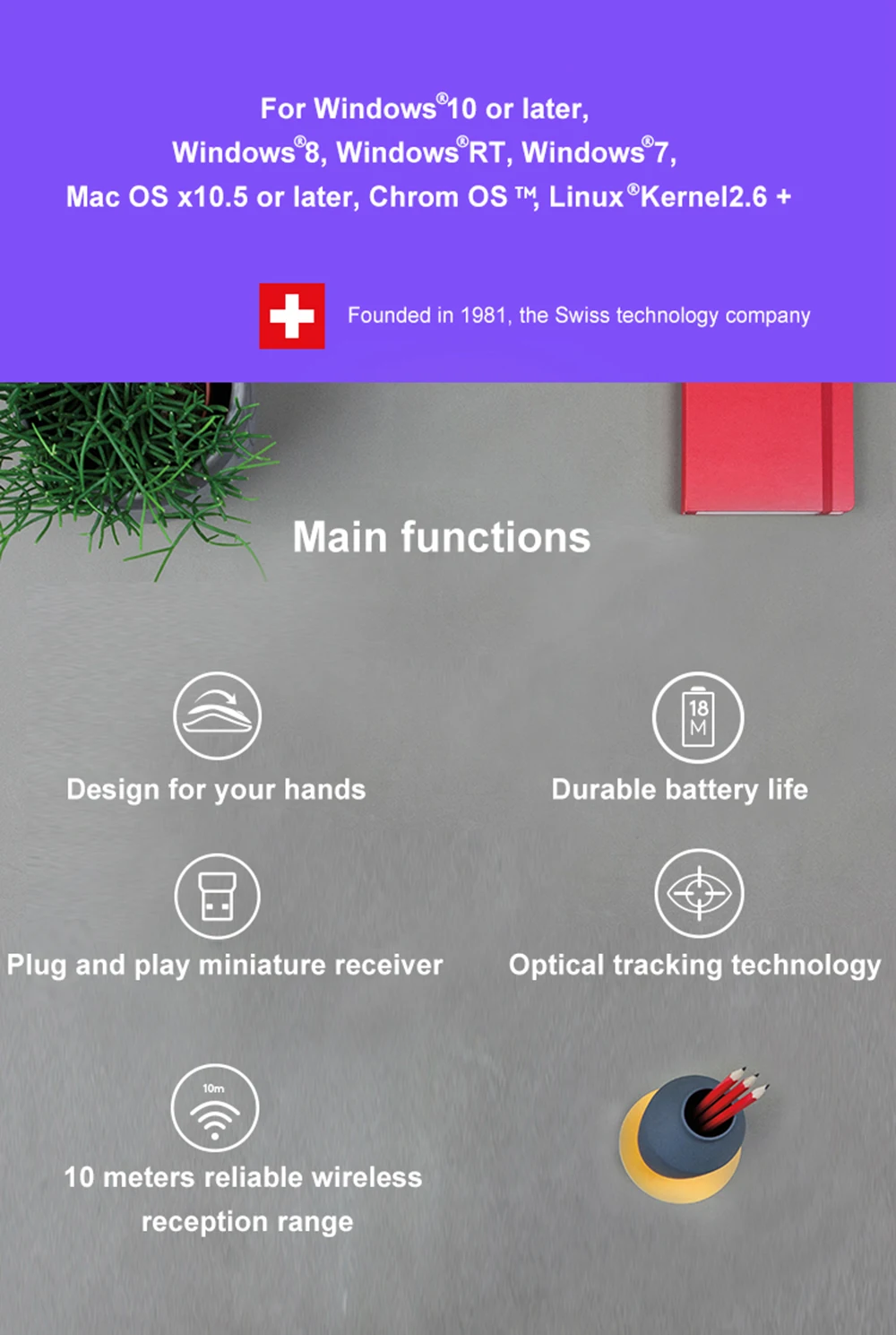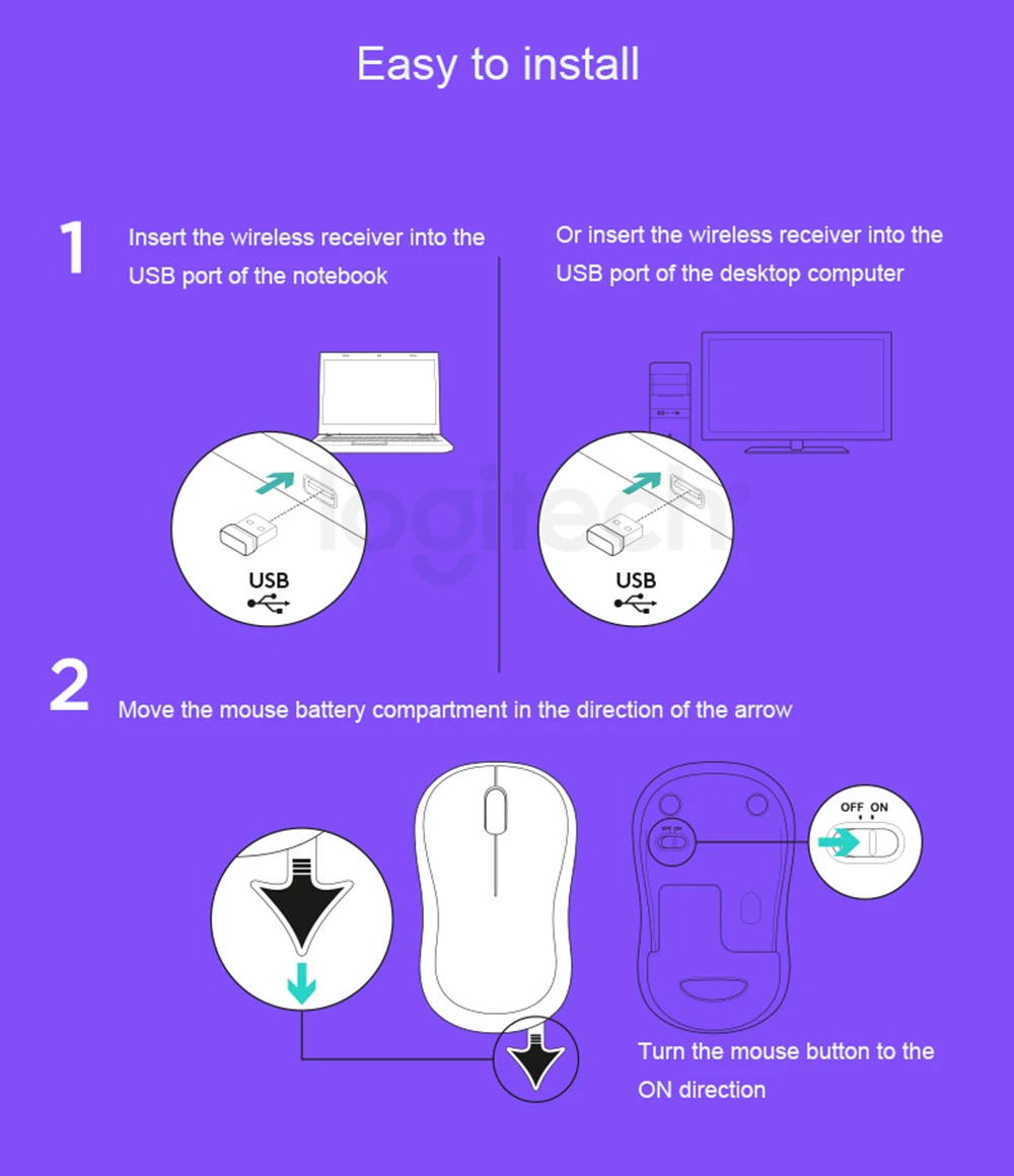Компактный USB-приемник, может оставаться в USB-порте компьютера, легко носить с собой, что снижает вероятность потери, когда он не используется, также может быть помещен в аккумуляторный отсек