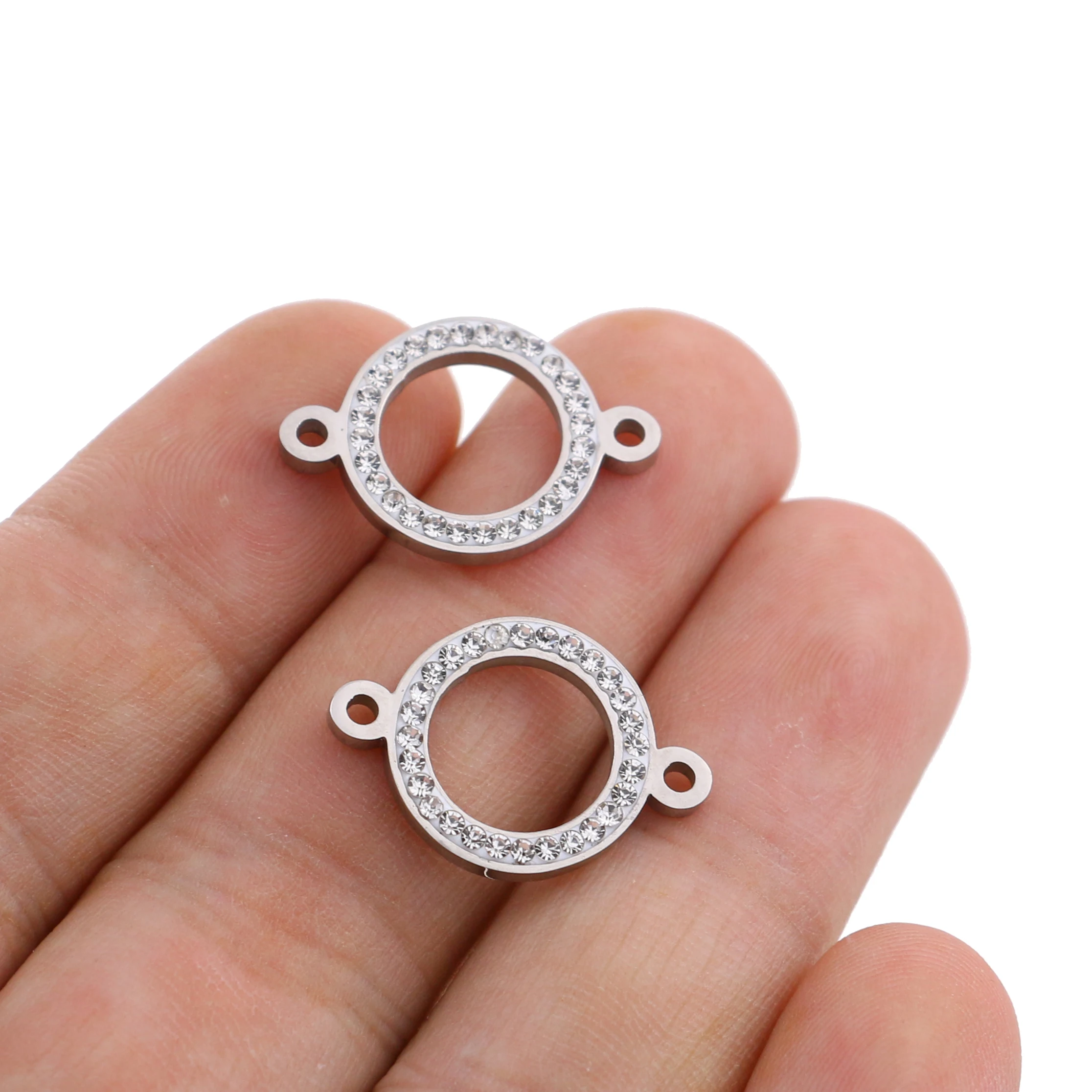5 шт.лот, высококачественный круглый коннектор из нержавеющей стали со стразами для изготовления браслетов, ювелирных изделий, фурнитура ручной работы сделай сам
