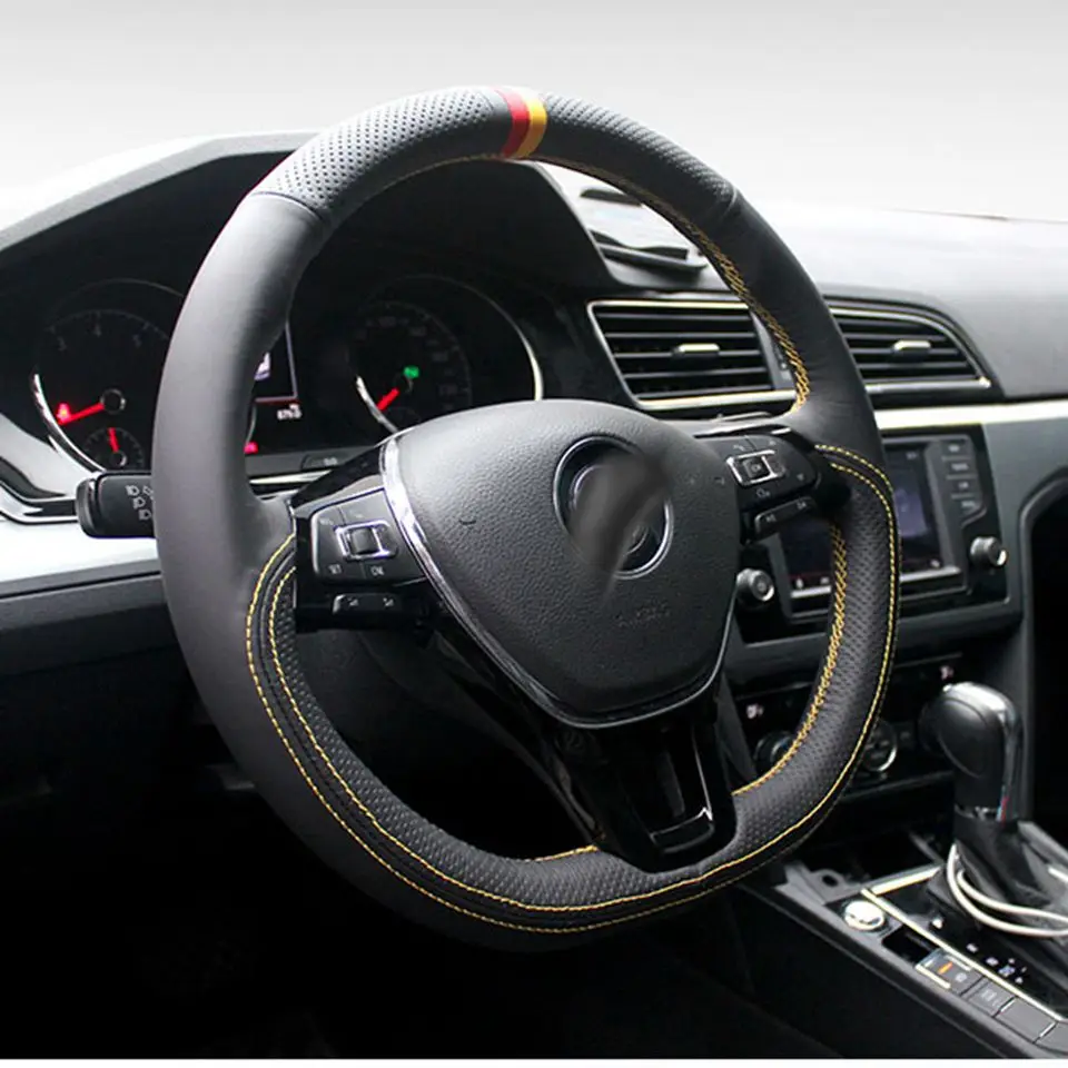 Сшитая вручную Обложка рулевого колеса, черная искусственная кожа, ...