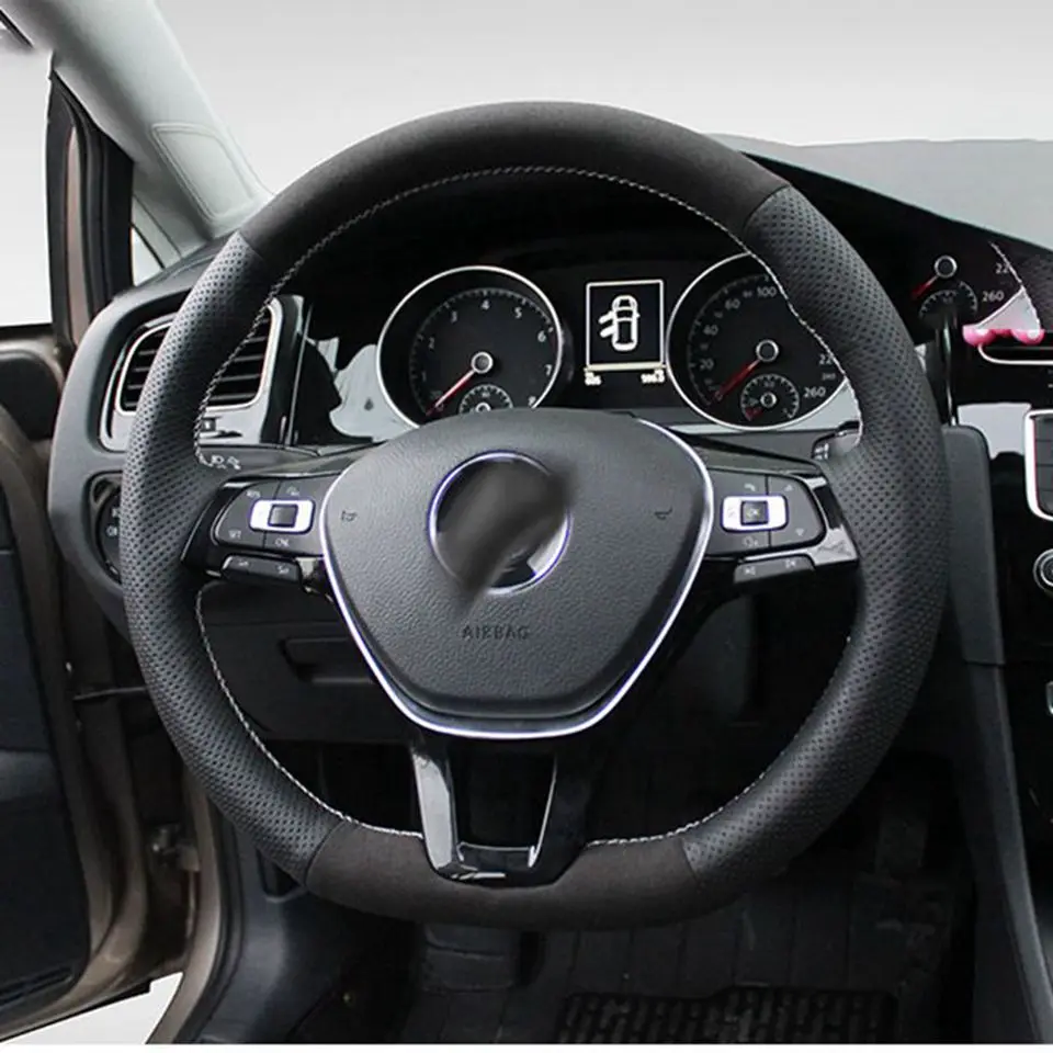 Пожалуйста, проверьте и сравните свой Автомобильный руль с рулем на картинке перед покупкой. (наши чехлы на руль-это индивидуальный продукт, если есть какие-либо различия, они не подойдут)! Этот продукт является рулевой крышкой, а не рулем! Этот продукт подходит для Volkswagen Polo Jetta Passat B8 Tiguan Sharan Touran VW Golf 7 Mk7 новые и другие модели.