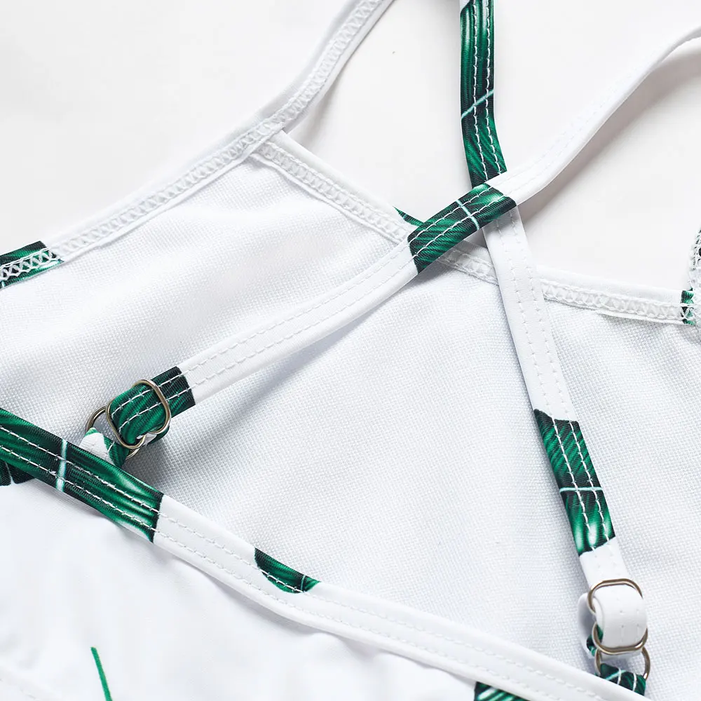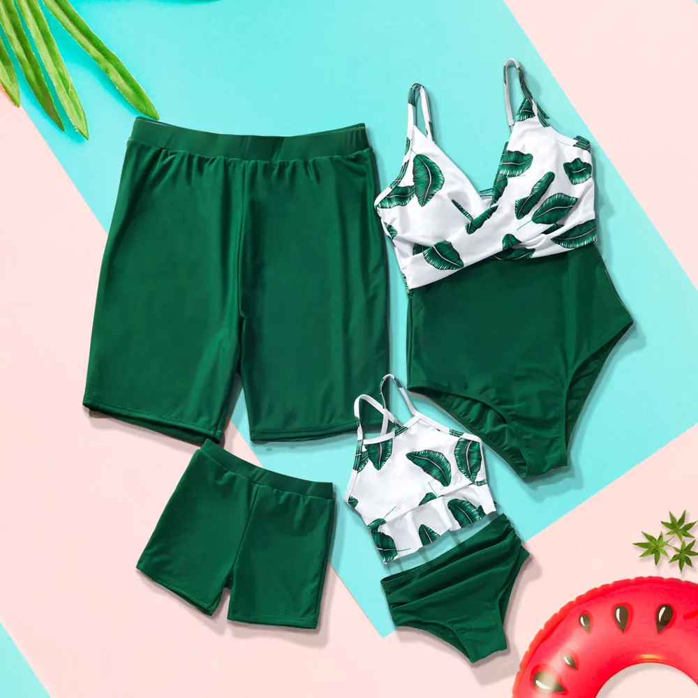 Семейный раздельный купальник с листьями, купальник с вырезом лодоч...