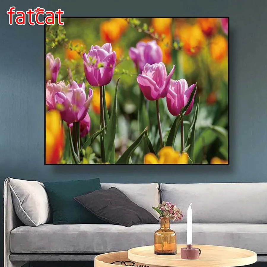 Картина из страз FATCAT, идиллический тюльпан, 5D, квадратная Круглая Мозаика, вышивка стразами, домашний декор, AE2046
