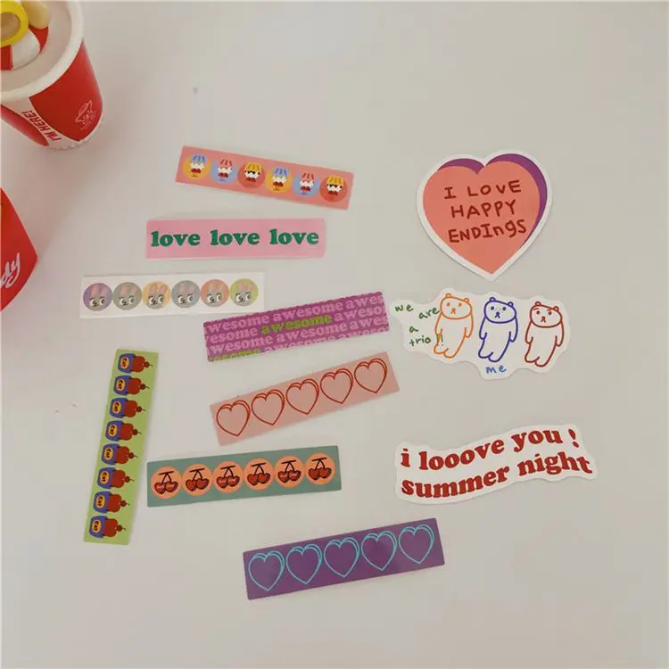 Милые наклейки с рисунком вишня в виде сердца, декоративные Стикеры для скрапбукинга, корейский дневник, альбом, наклейки, наклейки, Канцтовары Kawaii