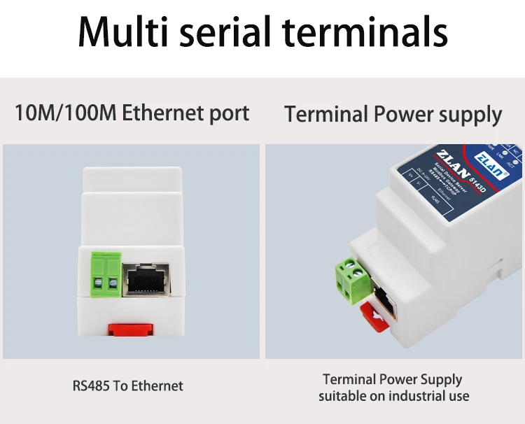 DIN-рейка RS485 последовательный порт к Ethernet конвертеру серверное устройство ZLAN5143D порт поддержки Modbus RTU к TCP