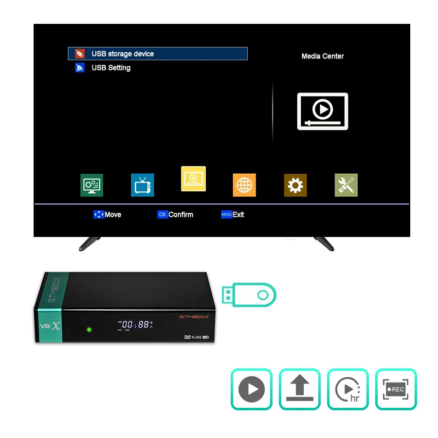 Приемник GTMedia V8X Full HD 1080P DVB-SS2S2X с поддержкой PowerVu,Bisskey H.265 Встроенный Wi-Fi, gtmedia V8 Nova Upgrade VS V8 UHD