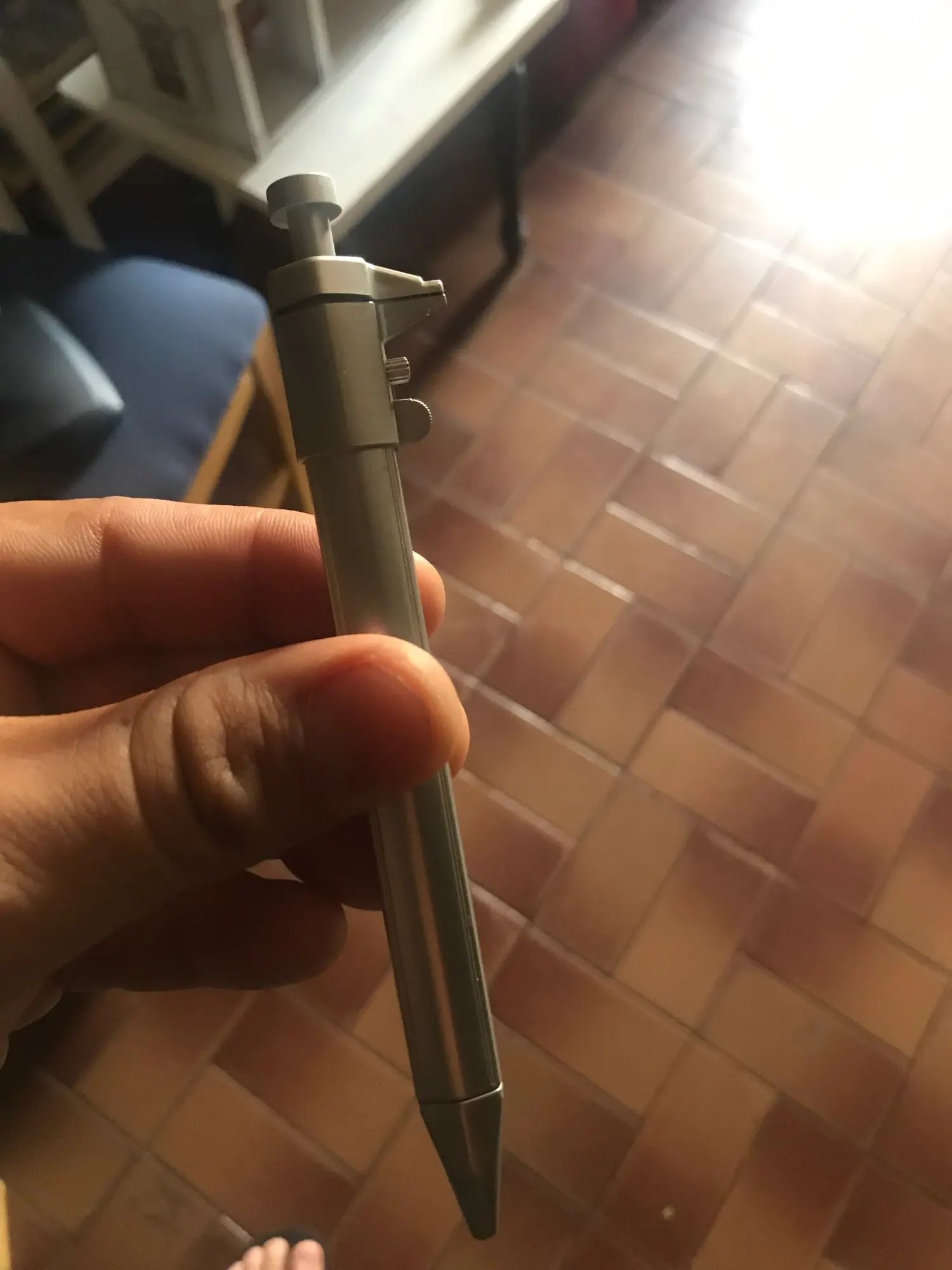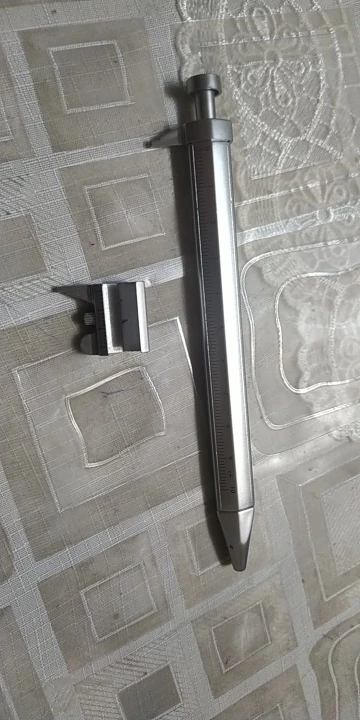 Прикольная вещица карманного формата! Пластиковая ручка-штангенциркуль . Карман не рвёт , не выпадает. Отлично!