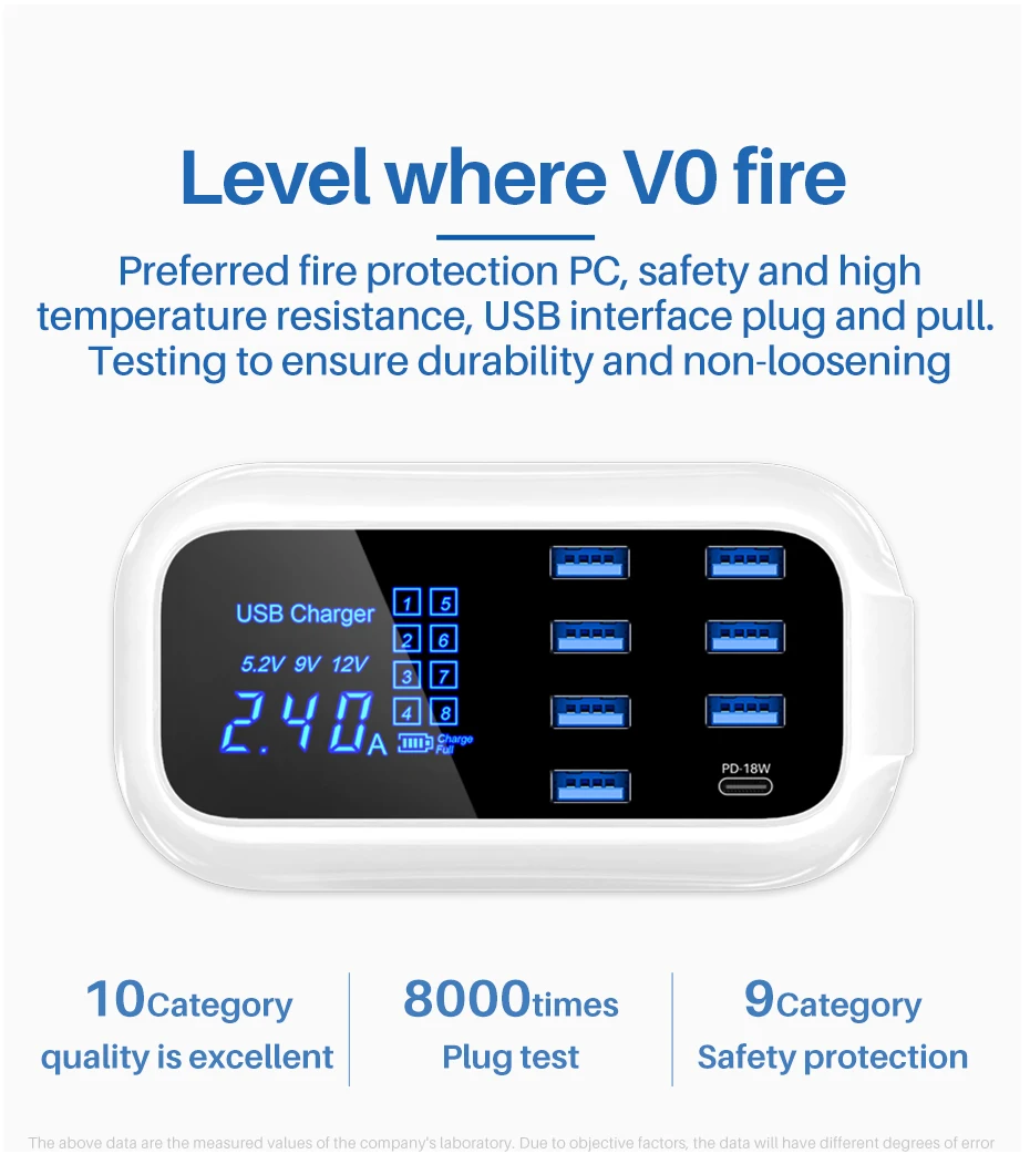Зарядное устройство с 8 USB-портами, адаптер для быстрой зарядки 3,...