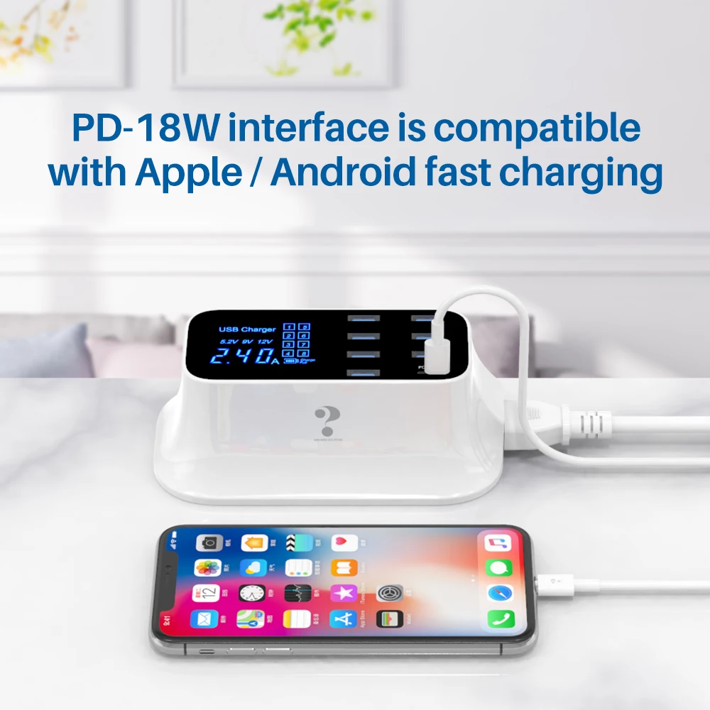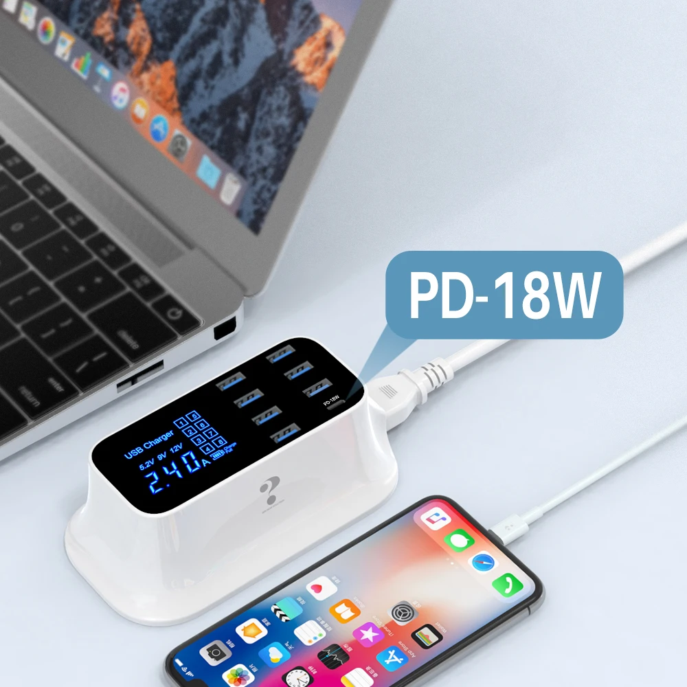 84-Port LED Display USB Charger Quick Charge PD USBC Charger For iP...