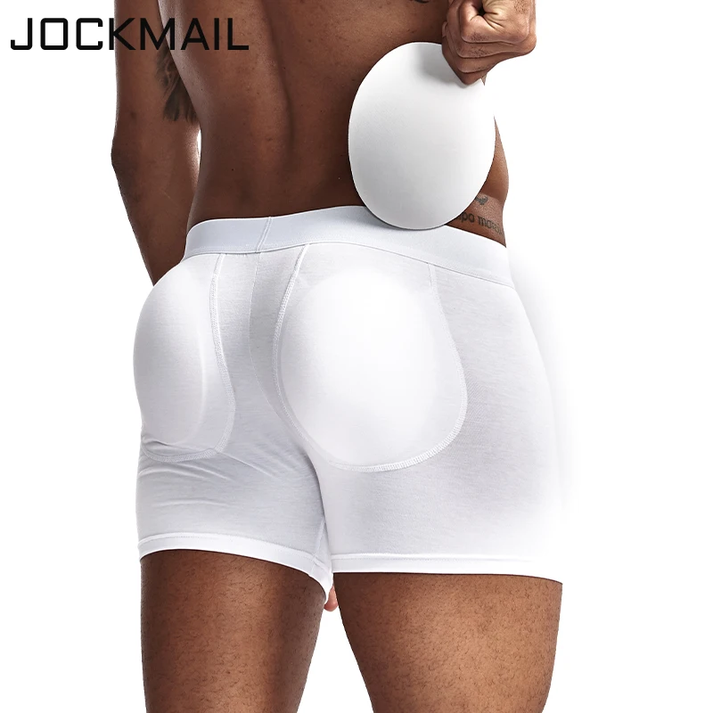 Трусы-боксеры JOCKMAIL мужские с подкладкой, нижнее белье со съемными вставками для подтяжки ягодиц, мужское нижнее белье для геев, белое черное