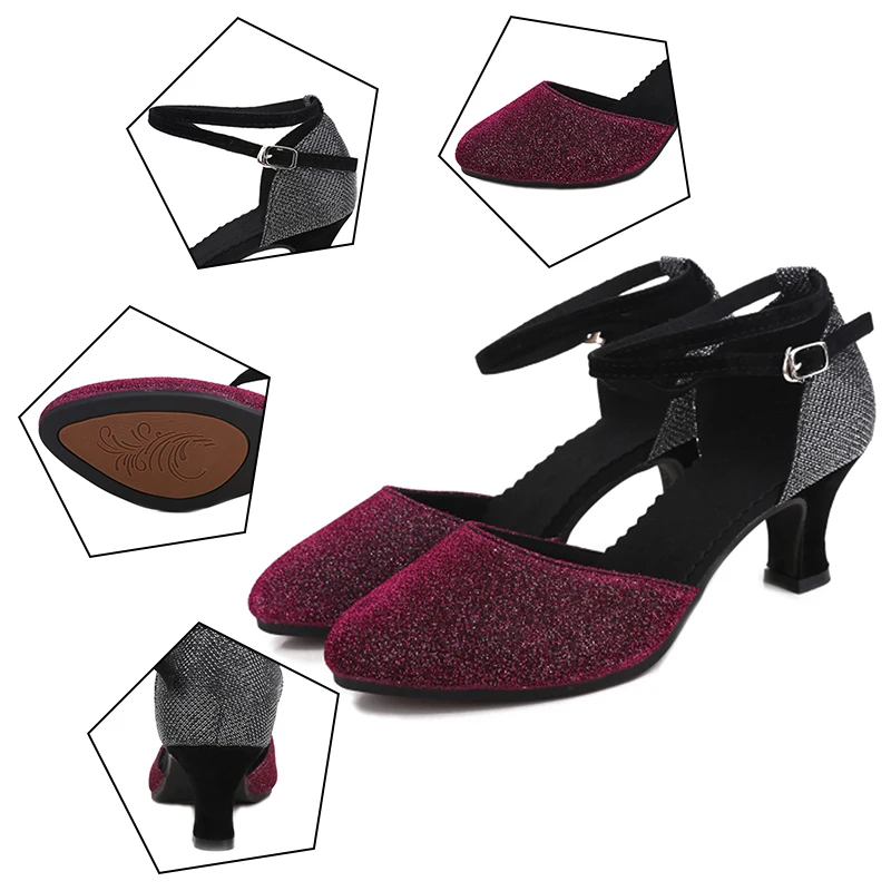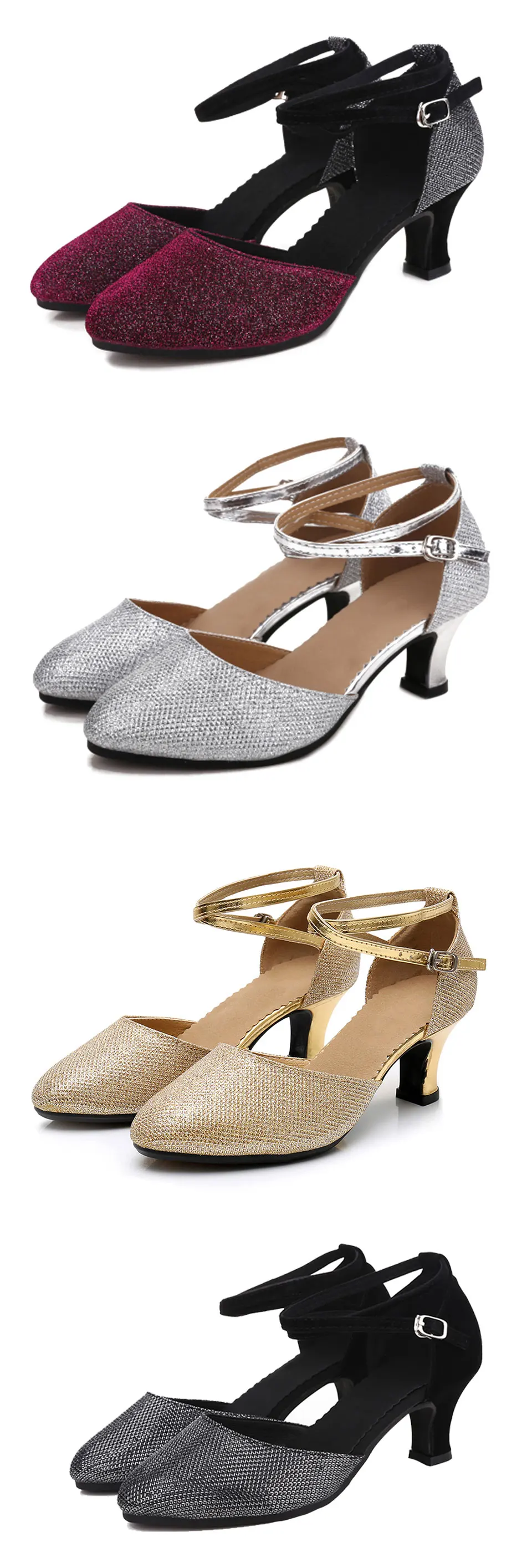 Обувь для латиноамериканских танцев для женщины, девушки, дамы, бальные современные Танго танцевальные туфли с закрытым носком, сексуальные сетчатые блестки, Прямая поставка