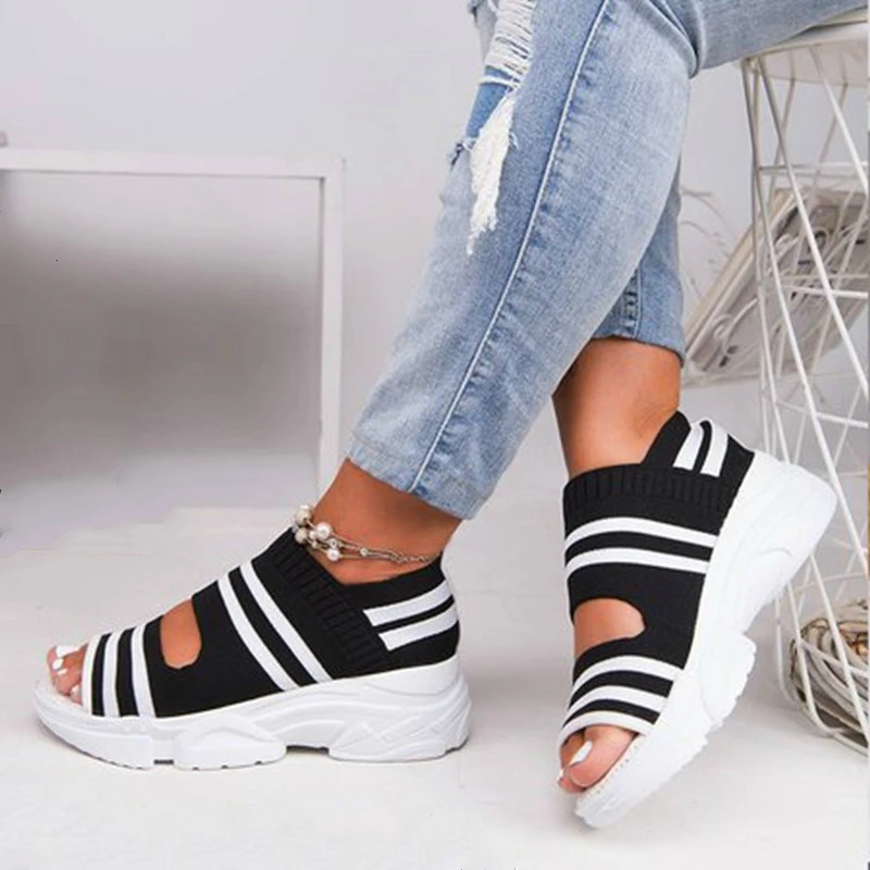 Сандалии женские на платформе и высоком каблуке, Повседневные вязан...