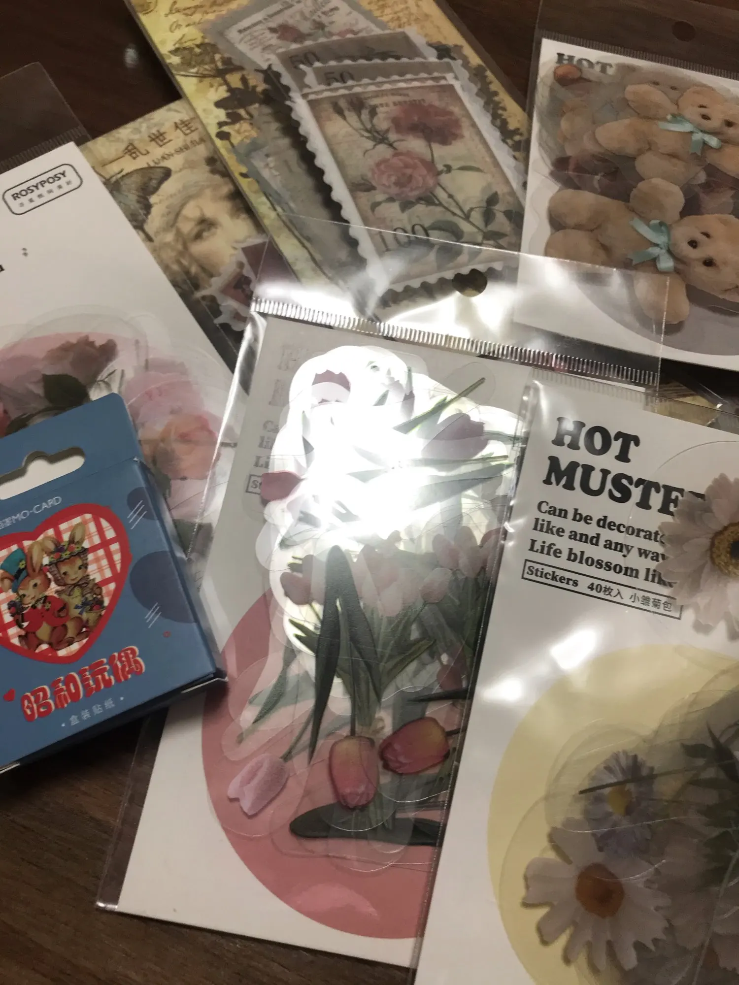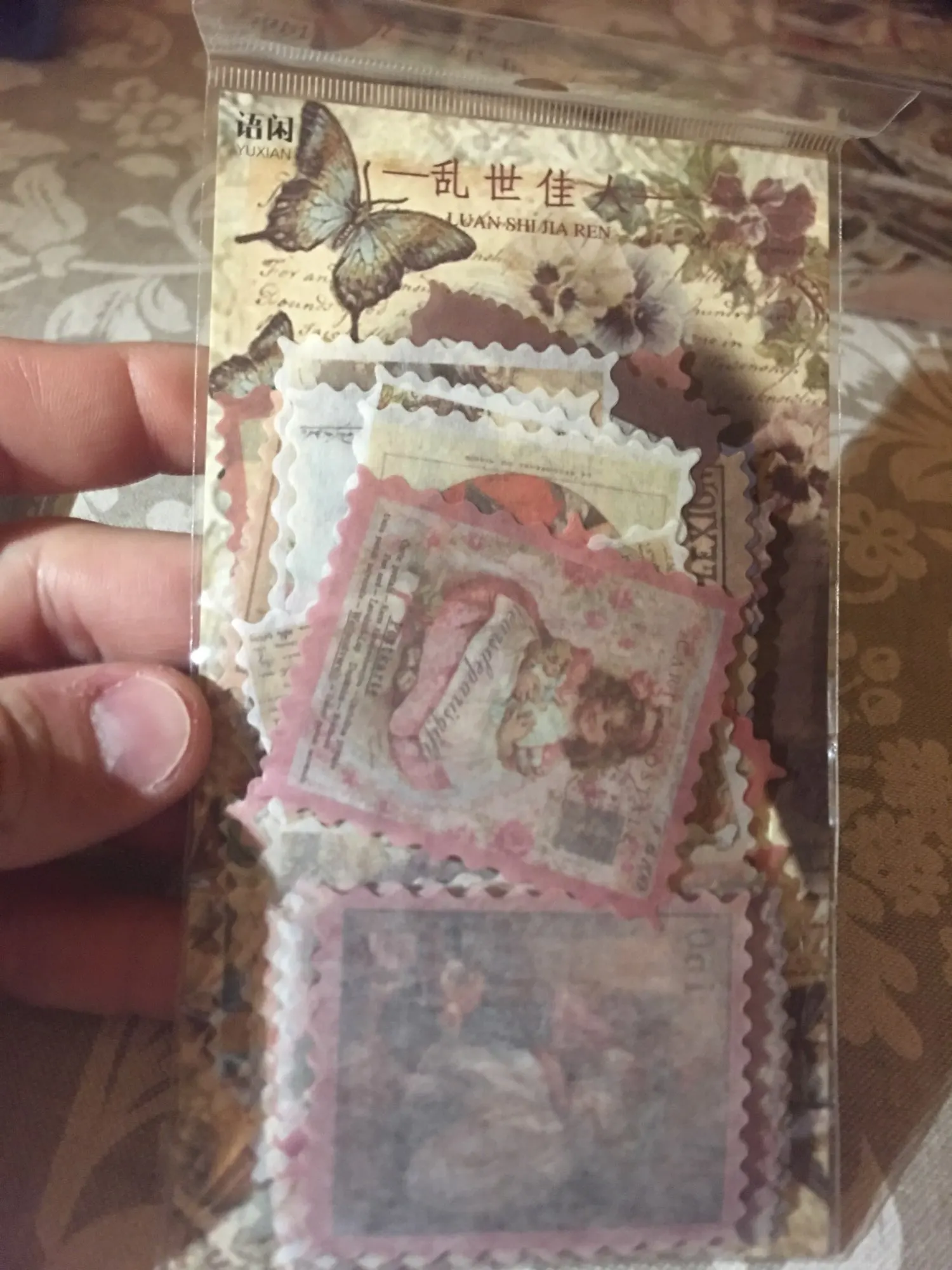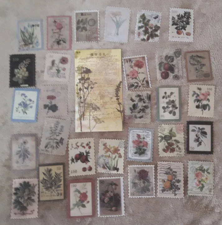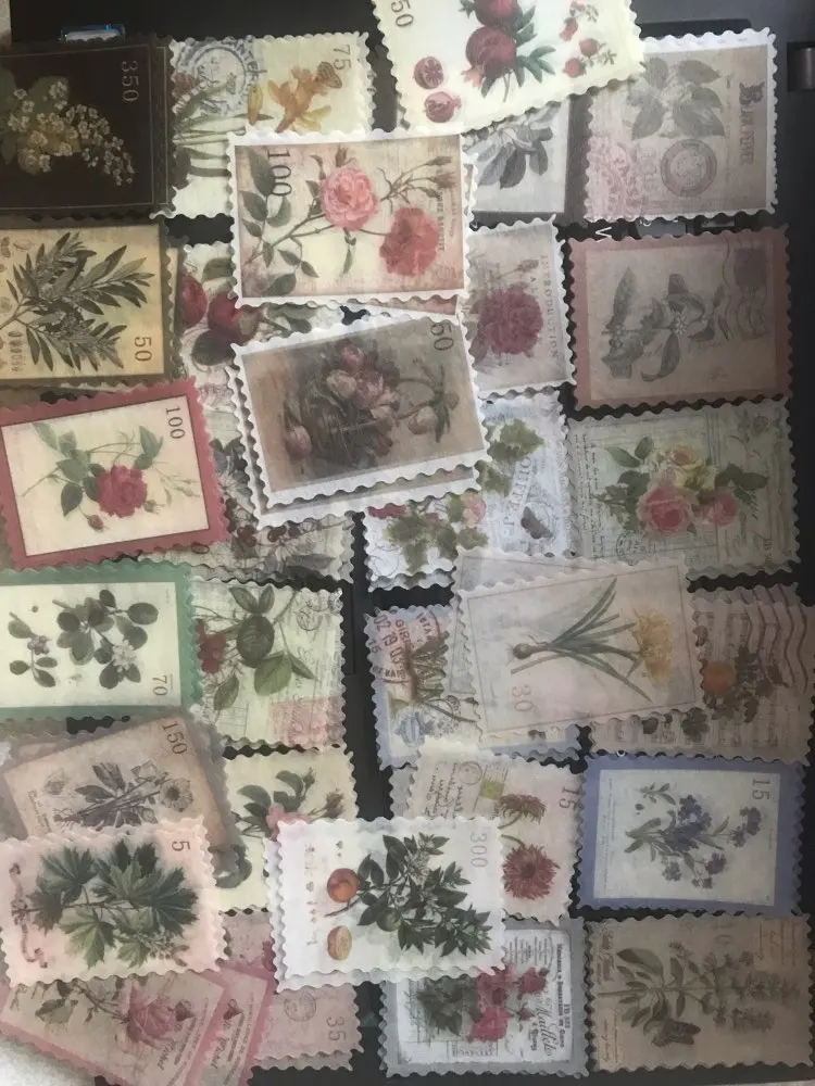 Это лучшие наклейки которые есть на алиэкспресс. Покупала уже аналогичные с другими изображениями у другого продавца. Решила взять ещё цветочную серию, у этого продавца оказалось дешевле. По изображениям - они просто изумительные ! Красивые нежные цветы приятных не кричащих расцветок в винтажном или шэбби стиле. Количество 60 шт, по 2 штуки с одинаковым изображением . Размеры в основном прямоугольные 4,5*6,5 см, но есть и квадратные. Сами наклейки матовые, полупрозрачные на пленке. Снимаются нормально, на бумаге держаться отлично!