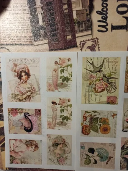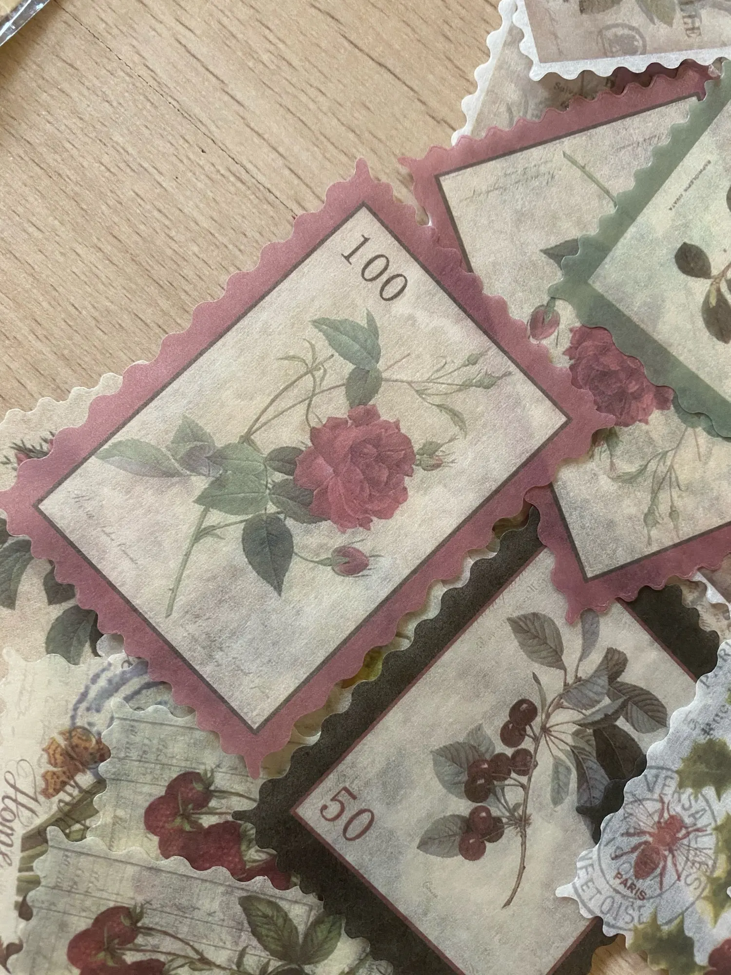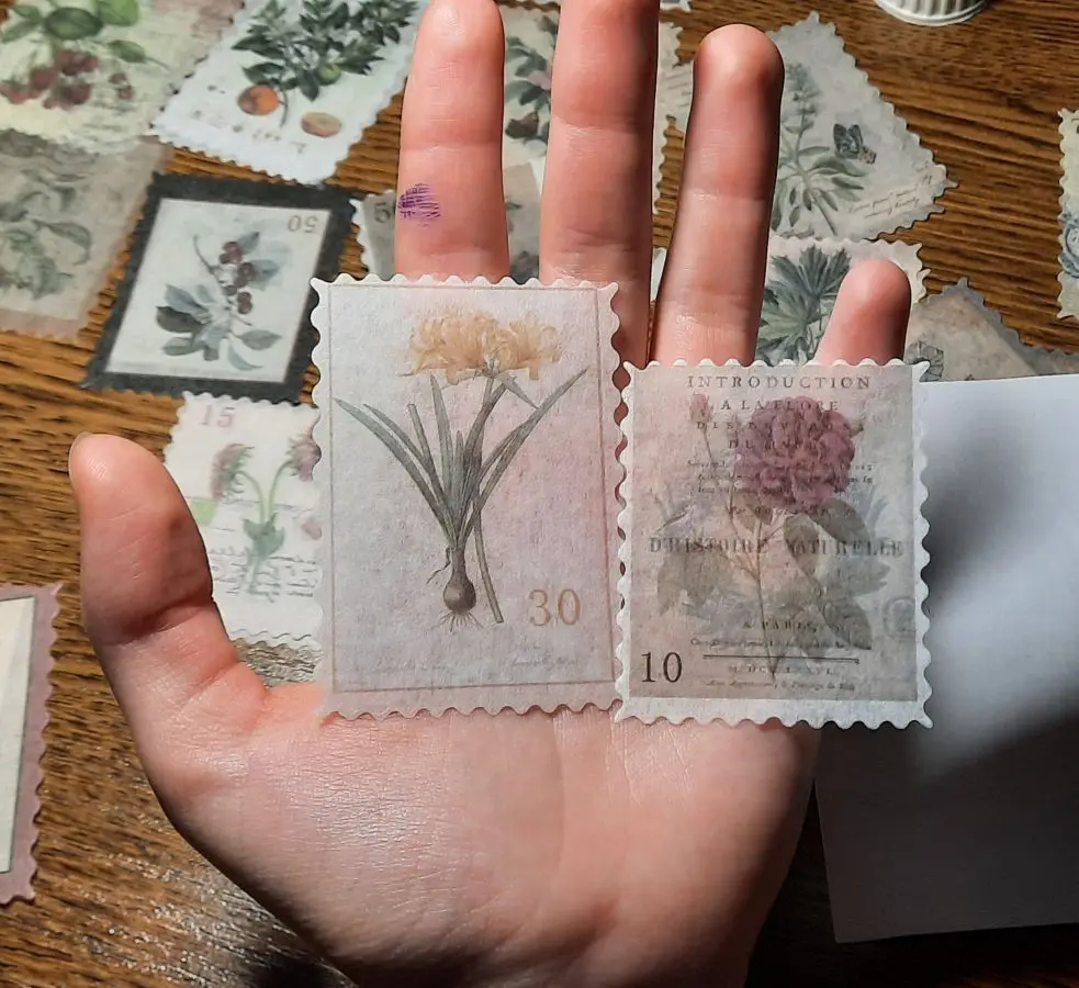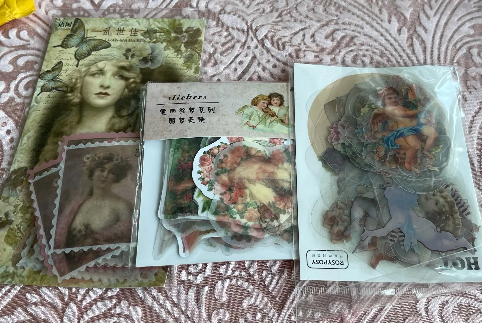 Это лучшие наклейки которые есть на алиэкспресс. Покупала уже аналогичные с другими изображениями у другого продавца. Решила взять ещё цветочную серию, у этого продавца оказалось дешевле. По изображениям - они просто изумительные ! Красивые нежные цветы приятных не кричащих расцветок в винтажном или шэбби стиле. Количество 60 шт, по 2 штуки с одинаковым изображением . Размеры в основном прямоугольные 4,5*6,5 см, но есть и квадратные. Сами наклейки матовые, полупрозрачные на пленке. Снимаются нормально, на бумаге держаться отлично!