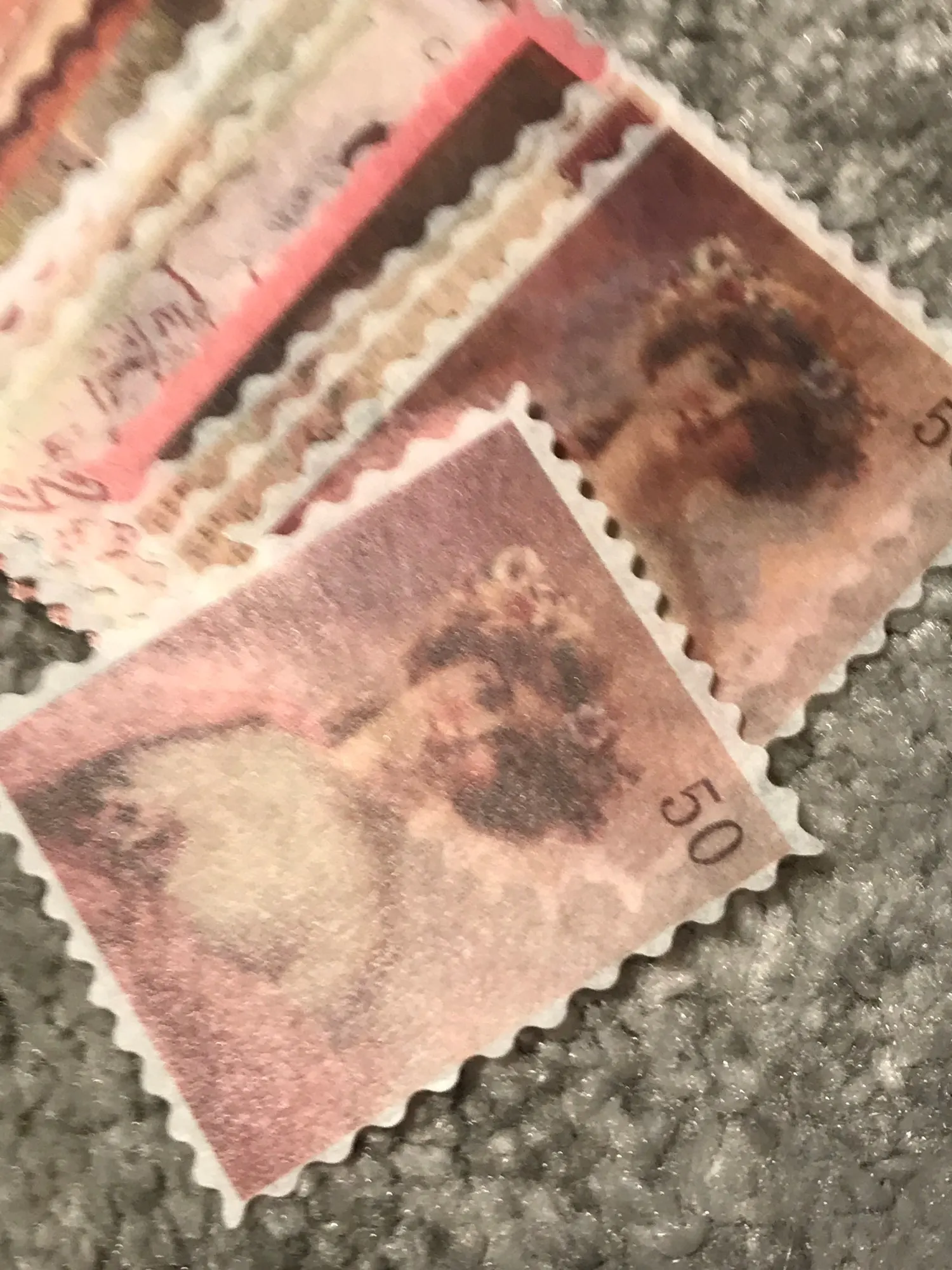 Марок ровно 60, пропечатано хорошо на 9 баллов из 10. Размеры марок колеблются от 58 мм до 68. Марки становятся ярче, если их приклеить на белую бумагу, иначе они очень бледные. Бумага марок глянцево-матовая, не супер матовая, как у обычных наклеек, довольно тонкая, отклеивается легко. Товаром довольна.