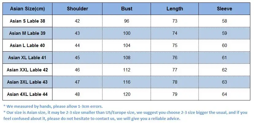 SizeAsian Size:S/M/L/XL/XXL/XXXL/4XL