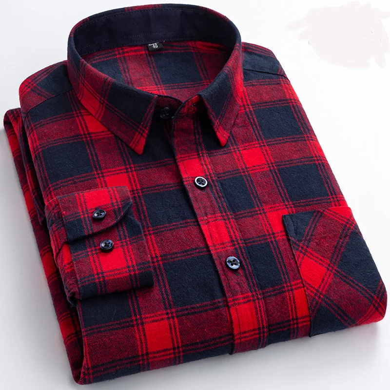 Мужская Фланелевая рубашка в клетку, с длинным рукавом, из натураль...
