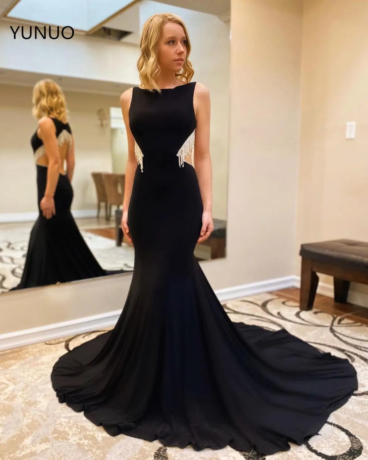 YUNUO 2021 элегантные черные вечерние платья Русалка открытая молния женское вечернее платье для выпускного вечера платье для официального мероприятия для женщин