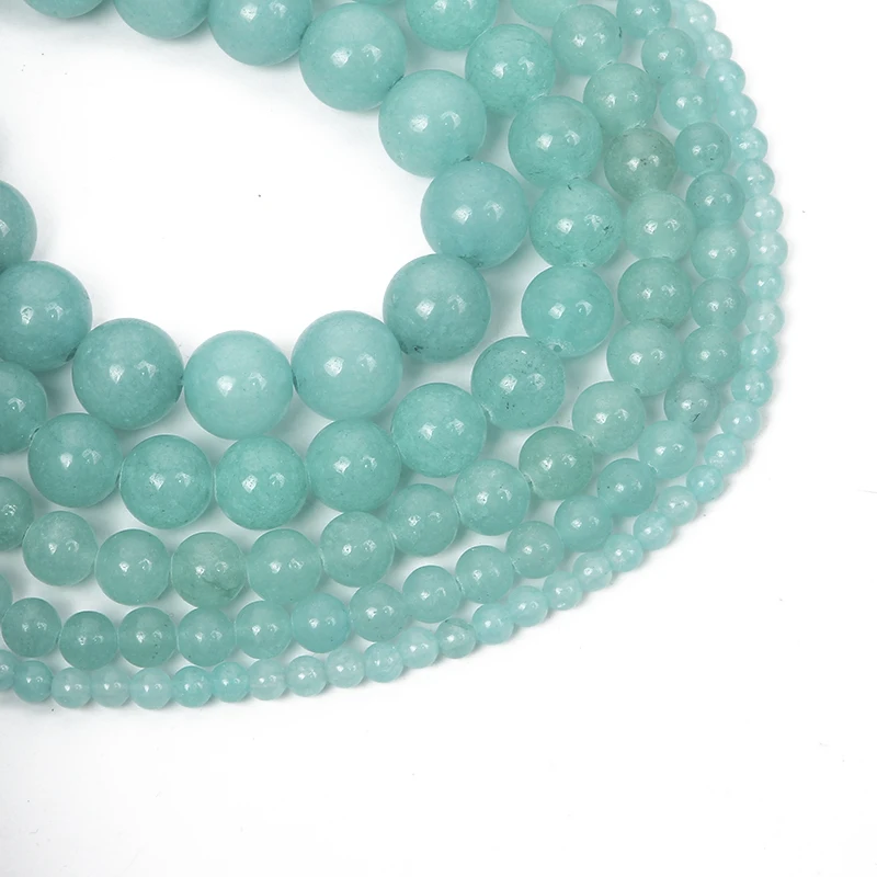 Круглые бусины из голубого халцедона, очаровательные бисеры россыпью из натурального камня для изготовления ювелирных изделий, браслетов для рукоделия, нити 4-12 мм