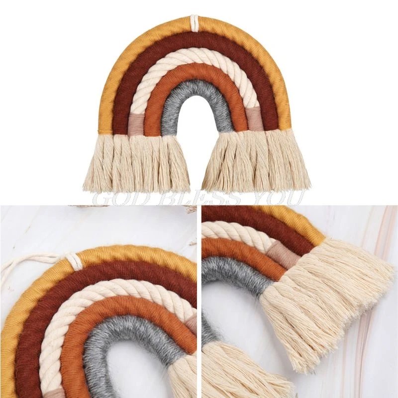 Материал: сделанные вручную красивые украшения из пряжи и хлопковой веревки. Добавьте характер и очарование к любой стене в вашем доме с помощью этой тканой радужной стены.