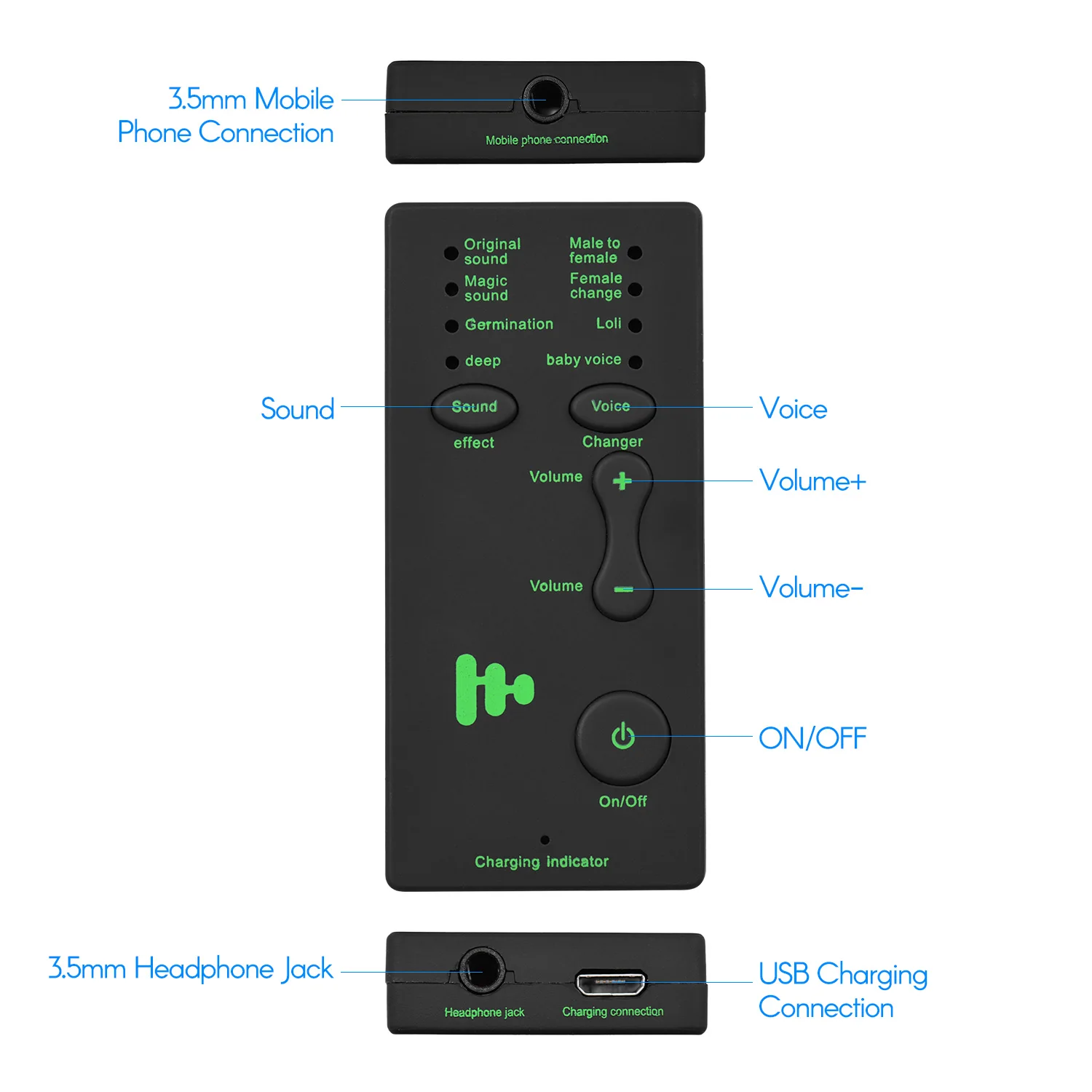 Характеристика:M1 mini voice changer поставляется с 4 звуковыми эффектами и 4 голосовыми изменением, наслаждайтесь изменением звука по вашему желанию.Мини-размер и легкий, удобно носить с собой. Подключи и работай, прост в эксплуатации.Подходит для смартфонов, ПК, планшетов, игровых приставок и т. Д. Совместим с большинством онлайн-приложений для караоке, онлайн-приложений для чатов и потоковых платформ.Принятие 3,5 мм Тип интерфейса, поставляется с одним 3,5 мм аудиокабель; Для некоторых устройств с различным интерфейсом, вы можете использовать конверсионной линии (не прилагаются).Встроенный 300 мАч/3,7 V литиевая батарея, может быть заряжается от micro USB кабель, поддержка 3-4 часа время использования после полной зарядки. Спецификация:Цвет: черныйЗвуковые эффекты: оригинальный звук + волшебный звук + прорастание + глубокоеИзменение голоса: мужской-женский + Женский-мужской + Loli + детский голосОтношение сигнал-шум: 106 дБДинамический диапазон: 106 дББатарея Ёмкость: 400мА/3,7 VБатарея энергии: 3,7 WВход для зарядки: DV 5V/1AТовар Размеры: 7,5*3,5*1,2 см/3*1,4 * 0.5inТовар Вес: 25g/0,9 ozПосылка Размеры: 14*12*3 см/5,5*4,7 * 1.2inПосылка Вес: 106g/3,7 oz Упаковочный лист:1 * мини-динамик1*3,5 мм аудио кабель1 * Micro USB кабель для зарядки Примечание:Если вы хотите, чтобы он совместим с iPhone7/8/X/XR, должен быть необходим оригинальный кабель преобразования (оригинальный кабель преобразования не включен.)Для некоторых игровых консолей, таких как PS4, иногда устройство смены голоса может работать неправильно.Для обеспечения нормального использования, пожалуйста, полностью зарядите голосовой Аппарат перед использованием.При использовании голосового чейнджера, пожалуйста, поместите микрофон рядом с вашим ртом, чтобы ваш голос был намного чистым.